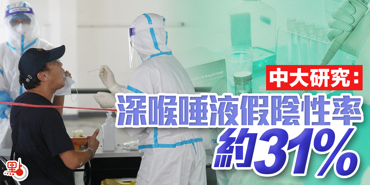 中大醫學院研究團隊發現,利用深喉唾液樣本做病毒測試,假陰性率約為31%,得出的陽性比率亦較其他抽驗方法低。