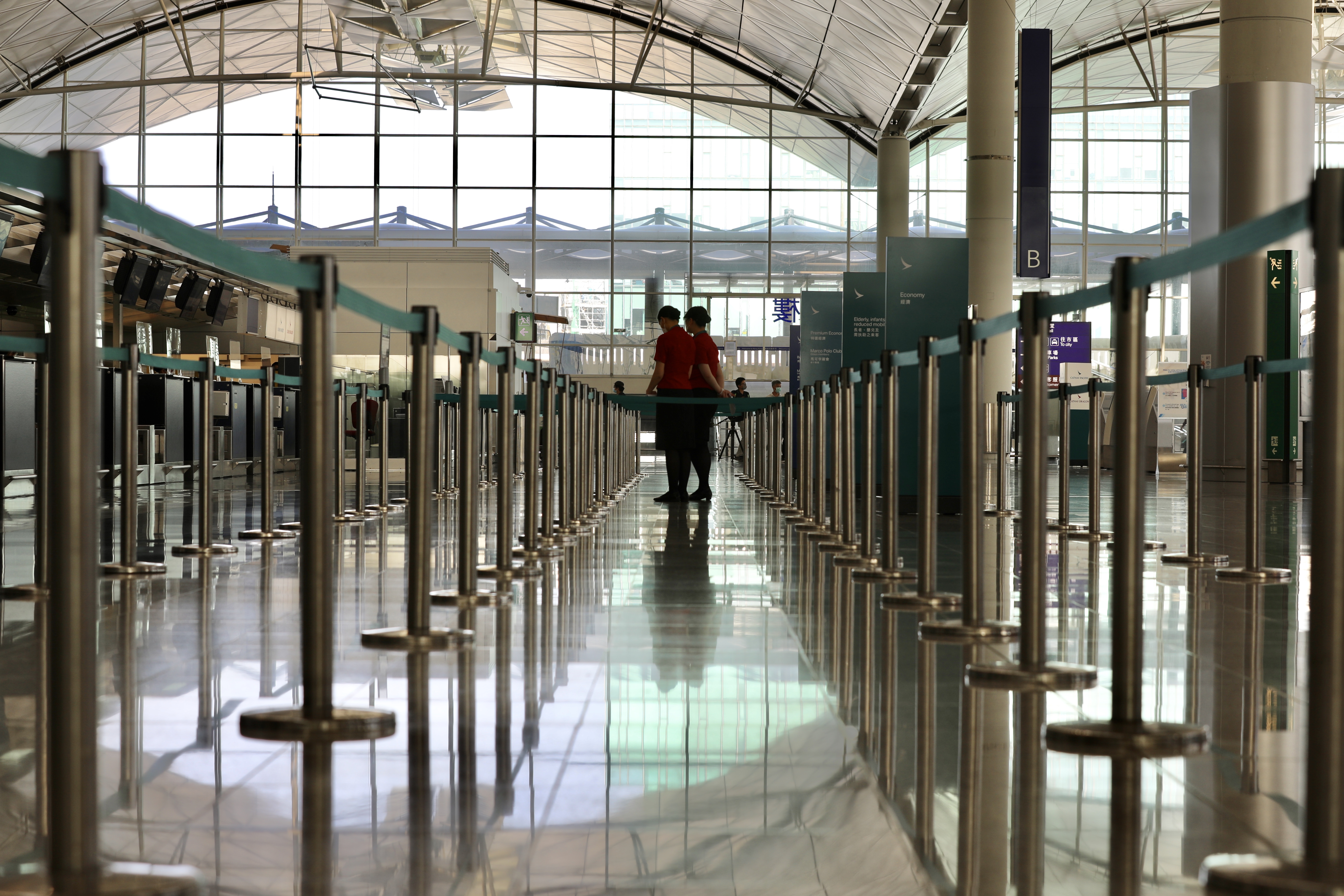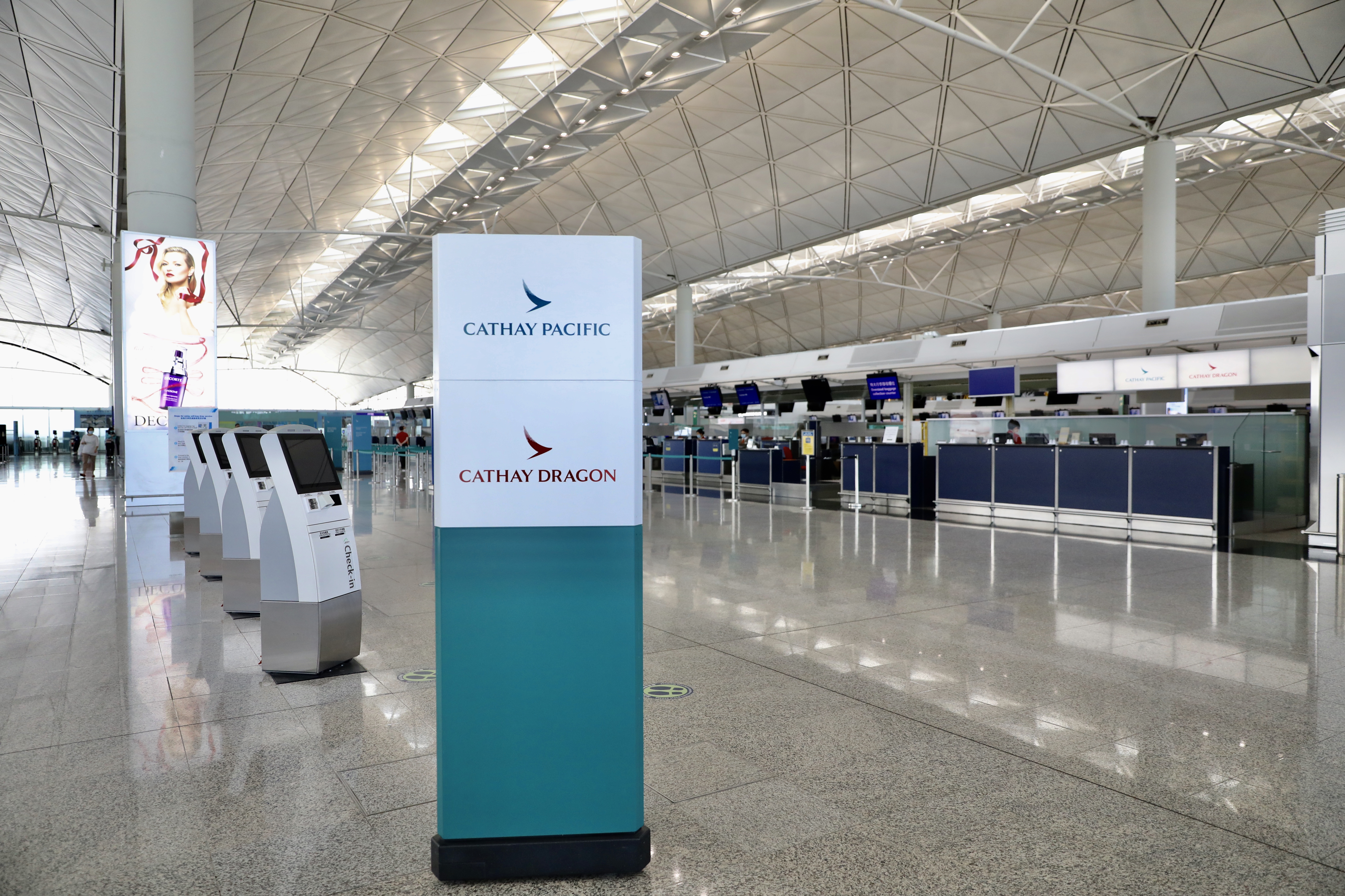 國泰櫃位有部分開放,不過只有少量地勤人員當值,十分冷清。