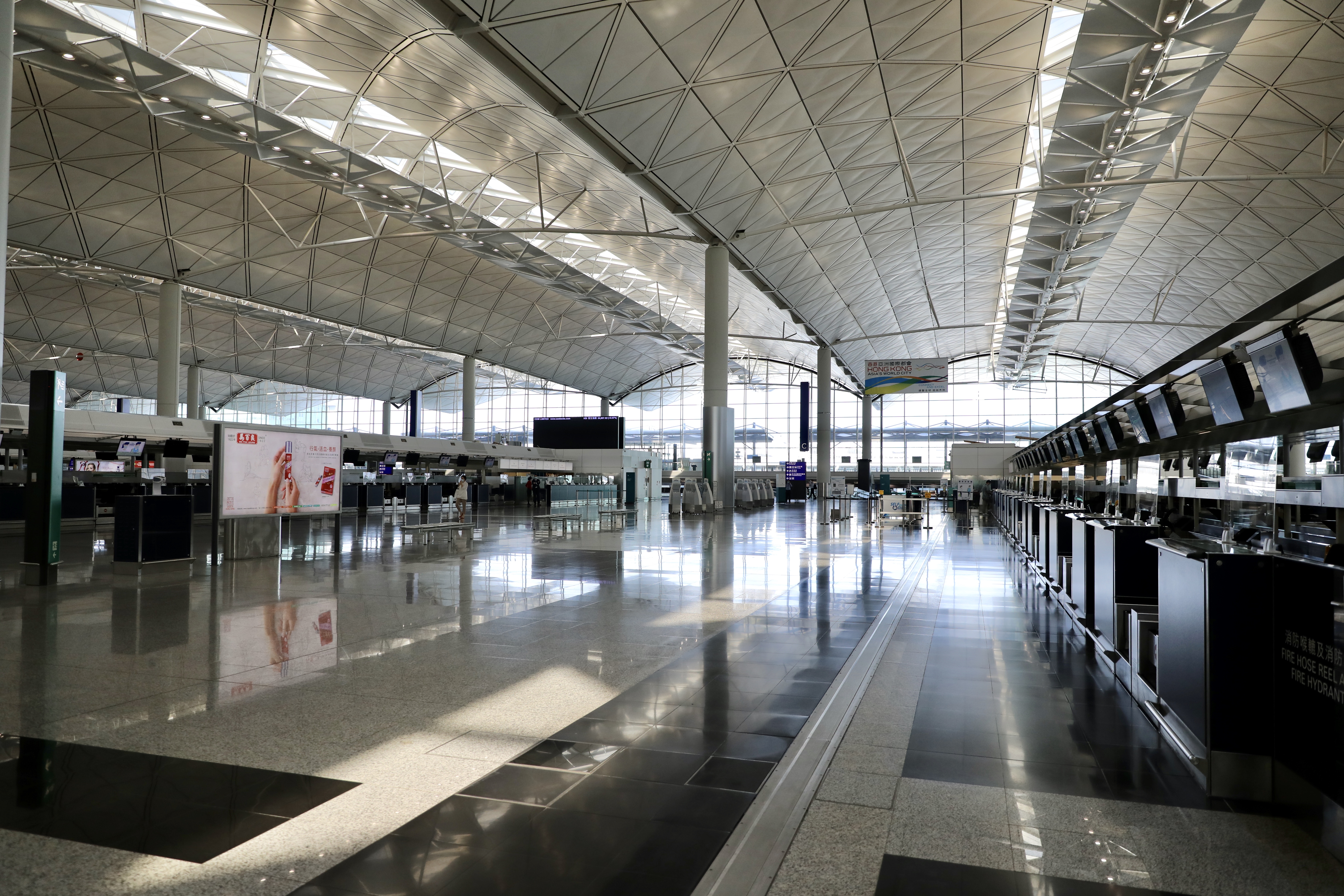 國泰航空今日(21日)宣布重組,裁員5900人,其中5300名為駐港員工,國泰港龍航空會即時停止營運。記者前往機場,見到國泰櫃位現時只有極少數旅客,偶爾可見到少量機場工作人員,有約9成5的櫃位被關閉,商戶和餐廳亦只有少數幾家營業。原本喧鬧的機場變得異常安靜。(點新聞記者攝)