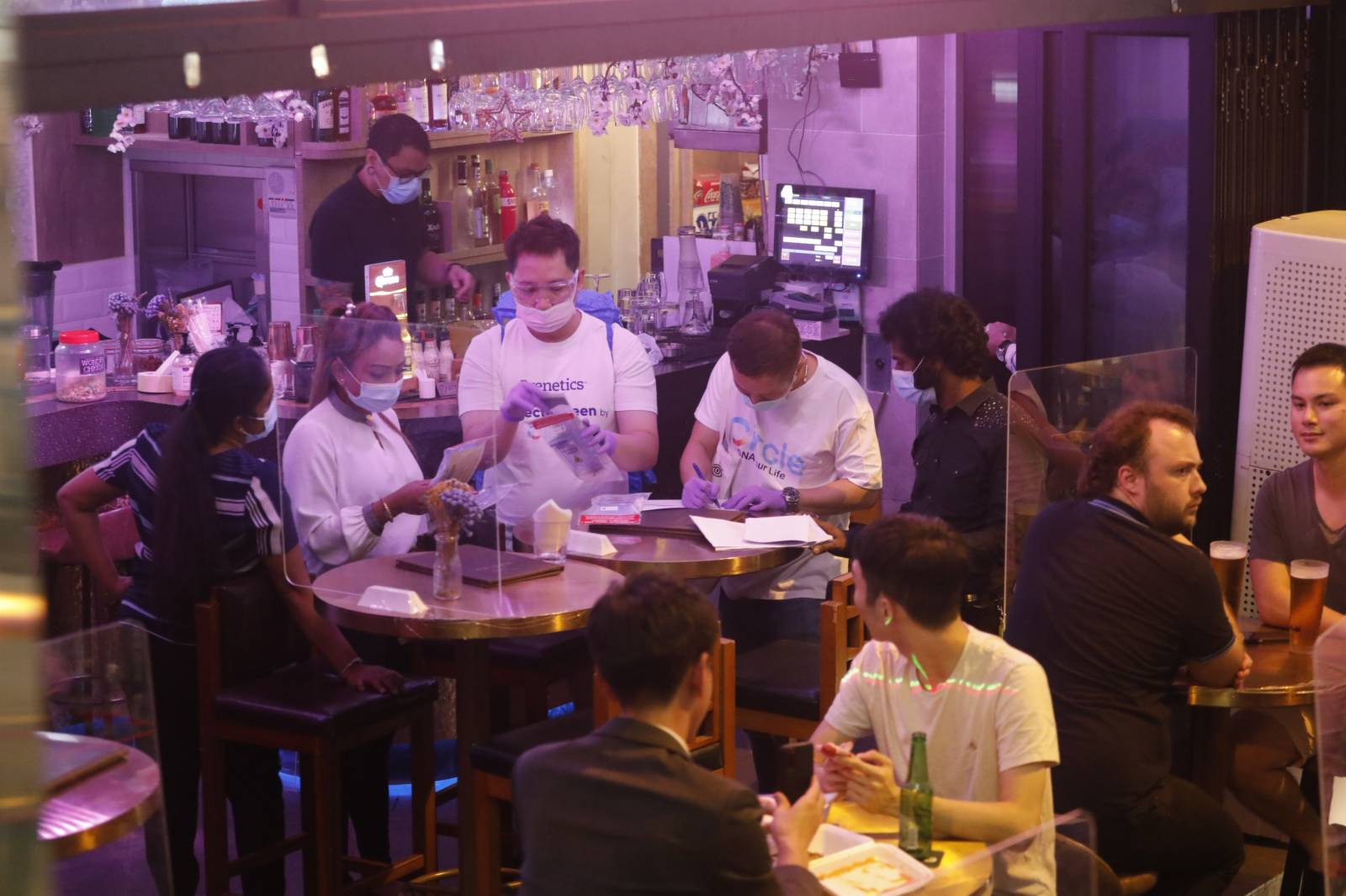 梁立仁表示,業界擔心員工及客人都未必熟悉新的防疫規定,已印製海報,貼在店內外作出提醒。他指,政府推出多項指引,是為了「提醒大家飲還飲,唔好飲咁大,唔好咁忘形」,且業界已要求員工見到忘形的客人時要作出提醒。