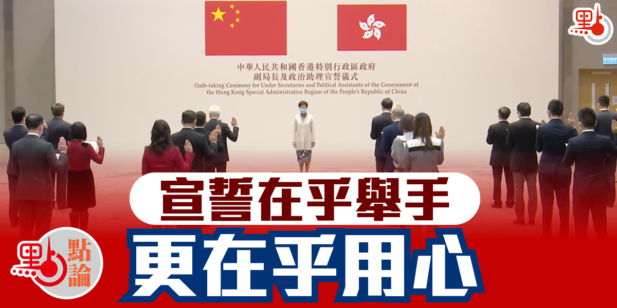 特區政府政治委任官員舉行宣誓儀式,是尊法守法敬法明法的高度體現。對基本法的擁護,實質上就是對中華人民共和國主權國的擁護,就是對中央對香港特區全面管治權的擁護,就是對基本法與國安法的擁護,就是對中央委任的特區管治團隊的集體擁護。亦因此,宣誓看似是一種輕而易舉的舉手行為,卻實實在在體現出多重的社會政治作用: