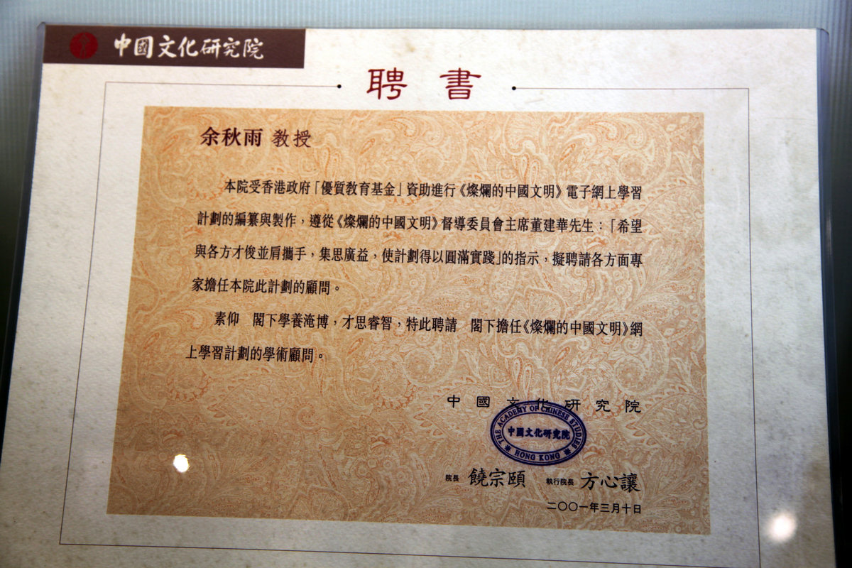 余秋雨的創作活動和文化傳播經歷,與港澳台淵源頗深。2005年至2008年,余秋雨被香港浸會大學聘請為「健全人格教育奠基教授」。2010年他接受澳門科技大學任命,出任該校人文藝術學院院長。2015年3月,余秋雨再度應邀在台灣大學和台灣各大城市進行「環島巡迴演講」,主題是《中華文化和君子之道》。
