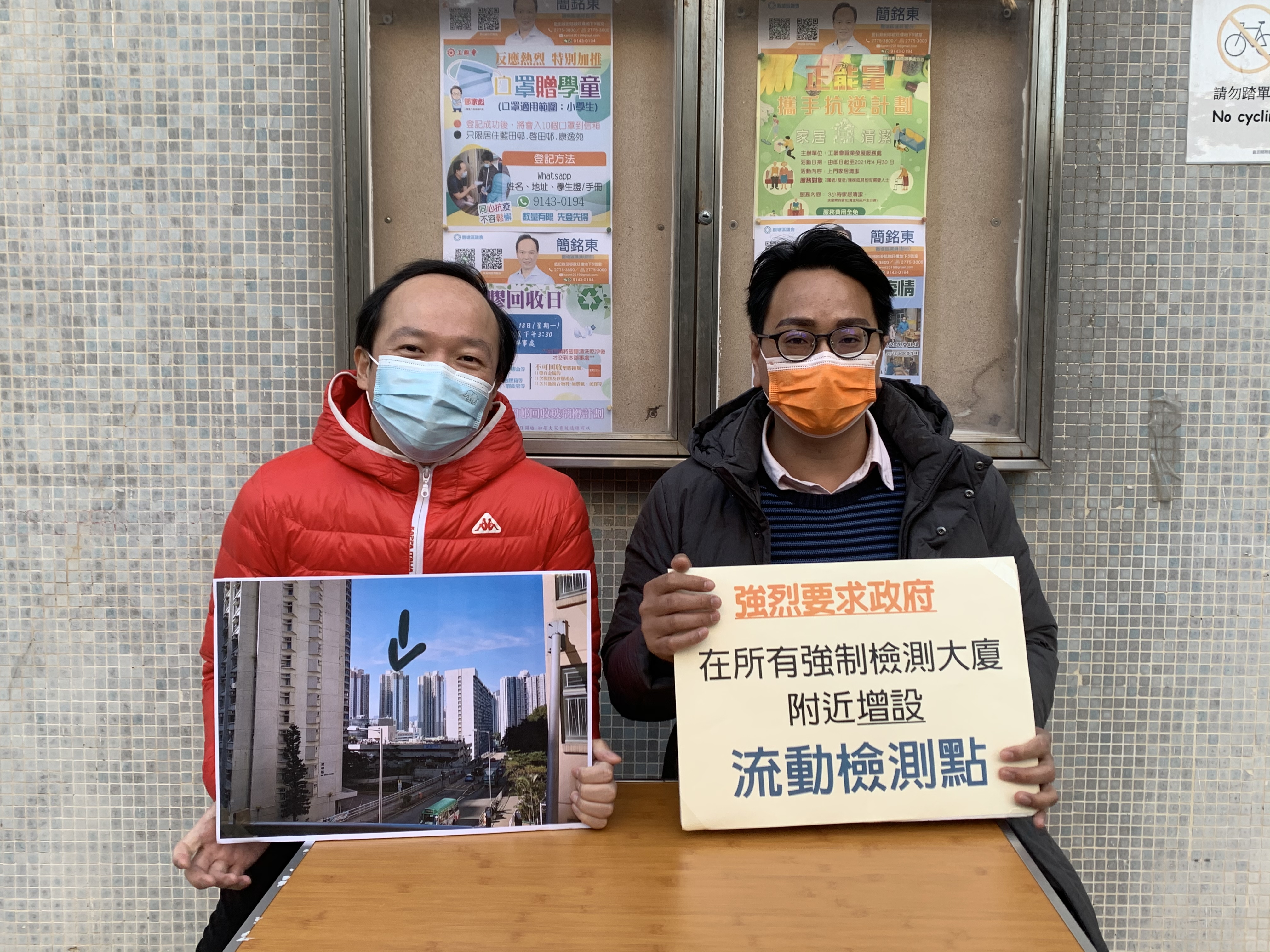 工聯會九龍東總幹事、觀塘區議員簡銘東、社區幹事余邵倫等人支持政府推行強制檢測工作,認為政府安排混亂,且檢測點嚴重不足,資訊十分混亂,呼籲政府在所有強制檢測大廈附近增設流動檢測點,以回應市民訴求,儘快控制疫情,防止區內爆發。
