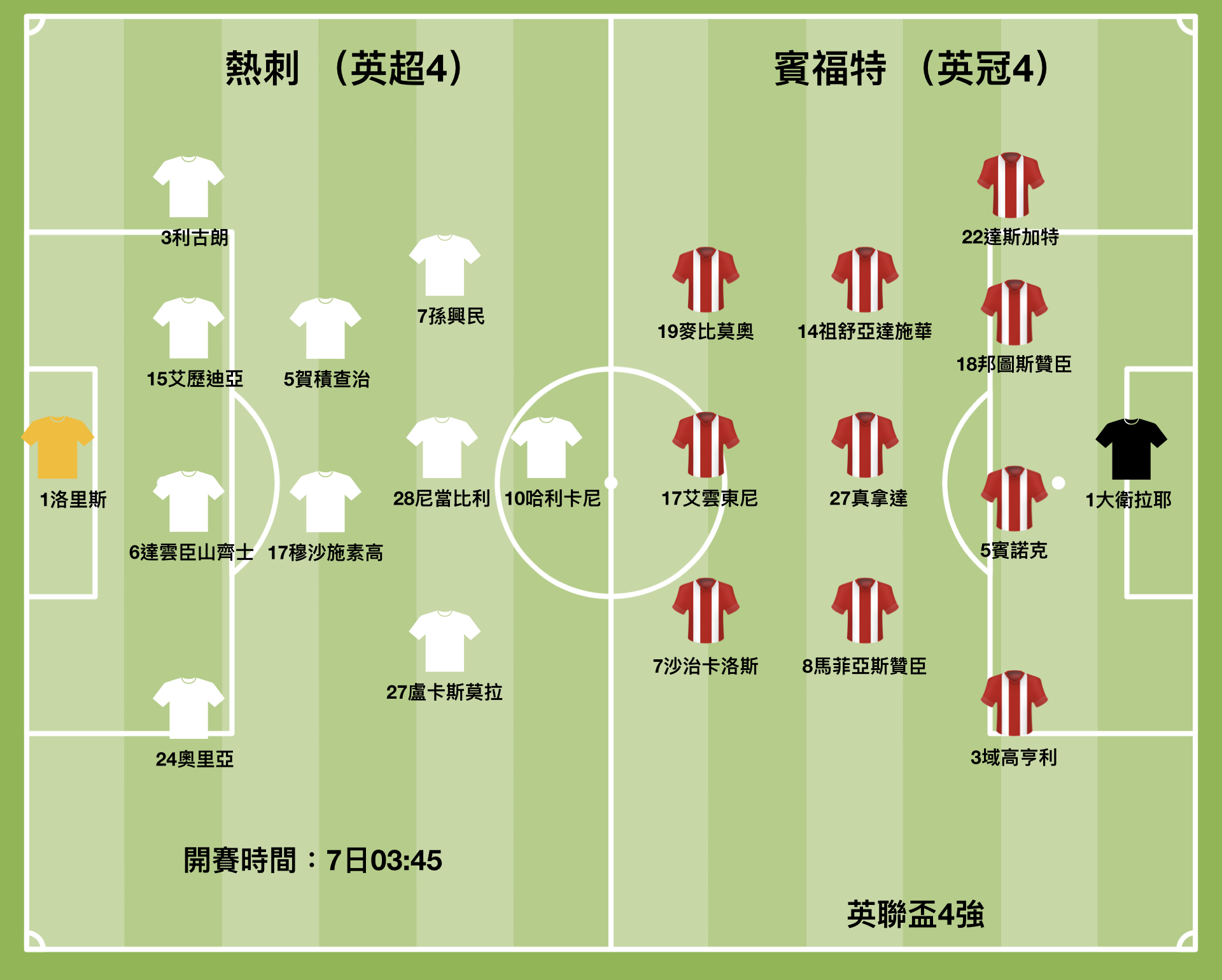 英聯盃基於疫情更改了昔日四強打兩回合的賽制,本屆一場決勝定出晉級決賽隊伍。熱刺上仗對富咸的聯賽,因對手陣中出現疫情而臨時取消,大軍白行一趟卻獲得更充裕時間備戰。熱刺再對上一役以3︰0大破列斯聯,總算從低潮中強勢反彈,最可貴是陣中鋒將孫興民、哈利卡尼均打破入球荒,預計摩連奴「盃仔當決賽」,今仗孫興民與卡尼均會上陣爭勝。
