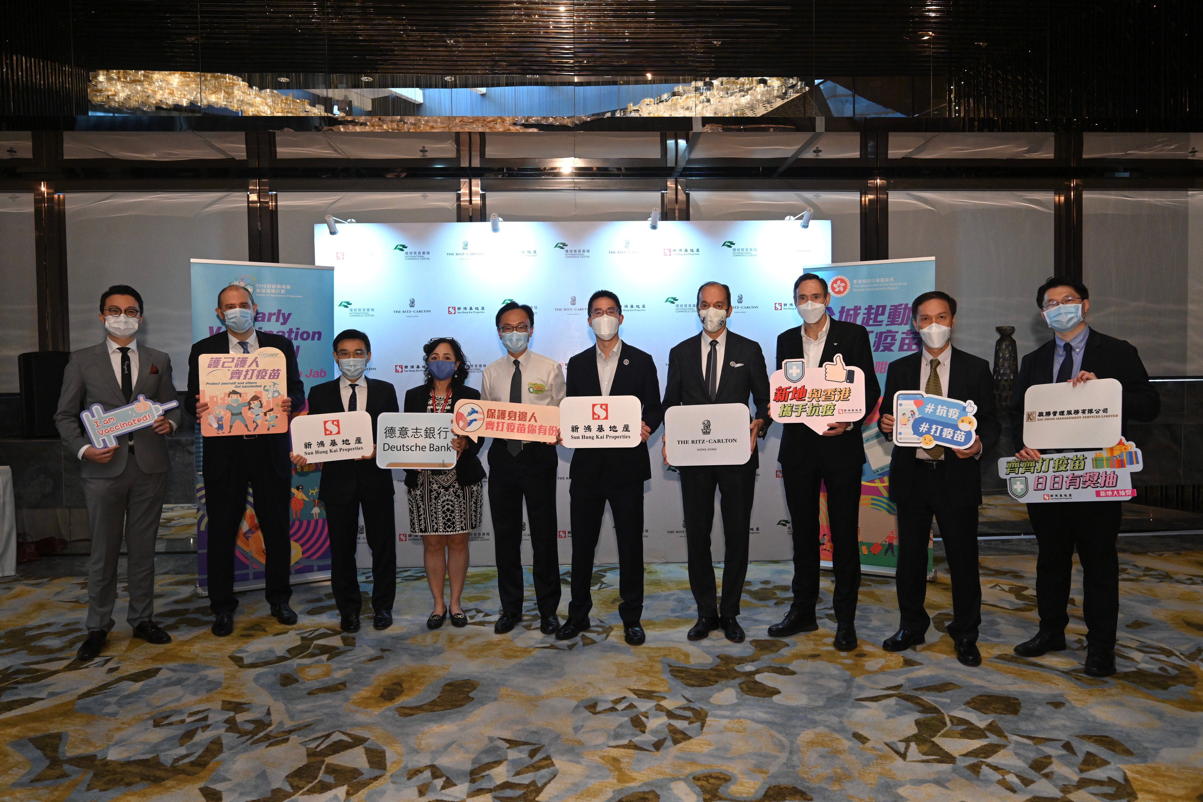 環球貿易廣場(ICC)聯同香港麗思卡爾頓酒店今日(29日)參與政府新冠疫苗外展接種服務,外展隊為約250人接種復必泰疫苗,接種人士來自管理環球貿易廣場的啟勝管理服務有限公司、香港麗思卡爾頓酒店,以及大廈內的國際金融機構等。