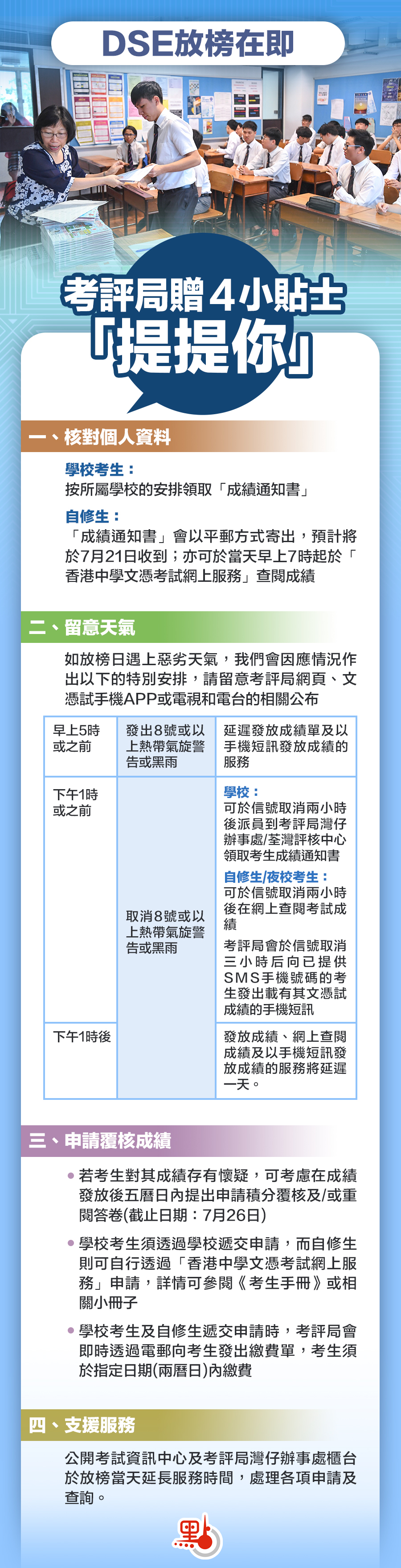 懶人包|DSE放榜在即 考評局4小貼士「提提你」
