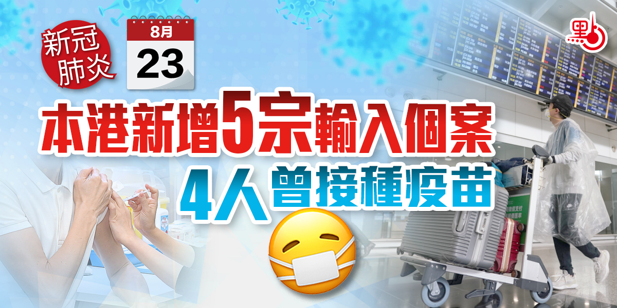 - 本港新增5宗輸入個案 4人曾接種疫苗