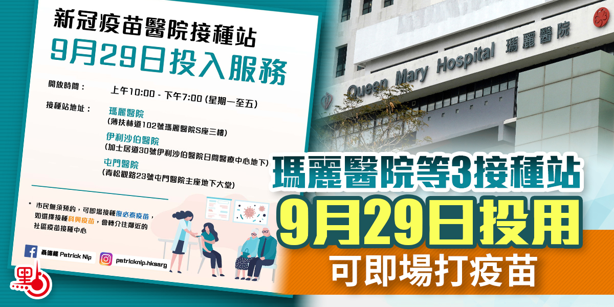 瑪麗醫院等3接種站明投用 可即場打疫苗
