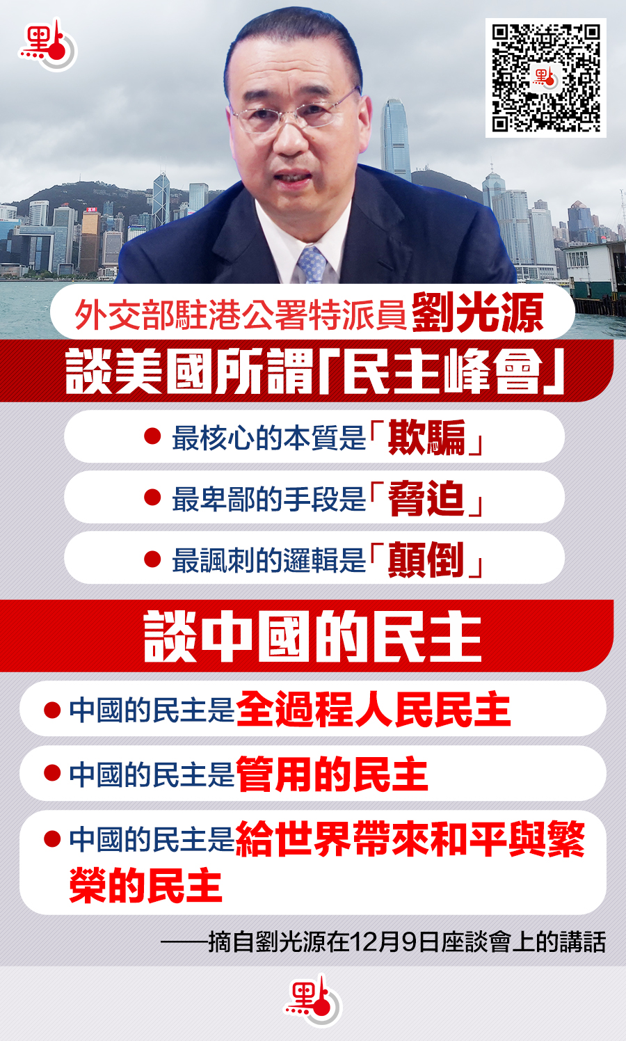劉光源:「民主峰會」核心本質是欺騙 唱衰香港詆譭國家將被釘在歷史恥辱柱(全文)
