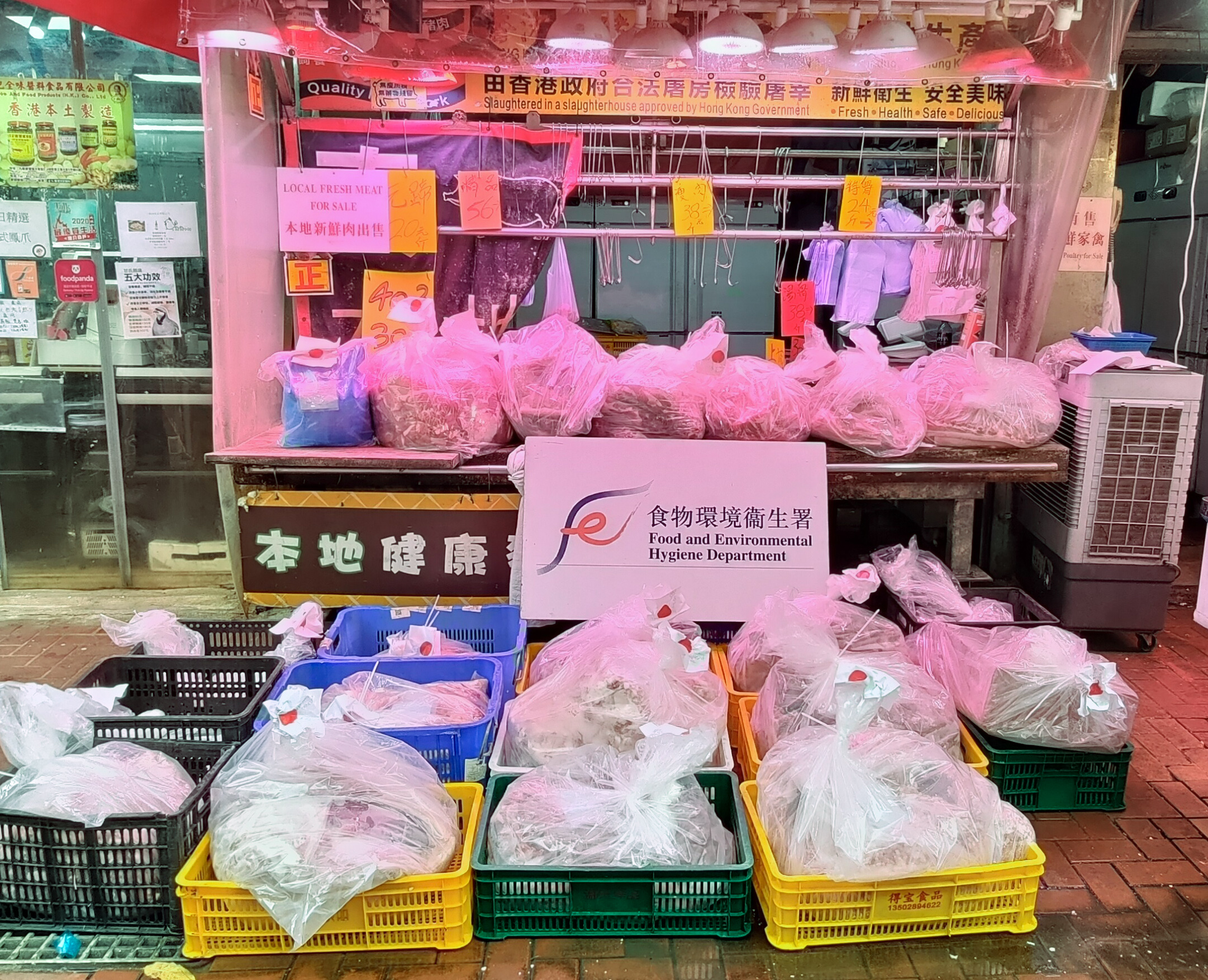 食環署今日(17日)聯同香港海關,在東區及屯門區向懷疑以冰鮮或冷藏肉充當新鮮肉出售的持牌新鮮糧食店採取突擊行動。