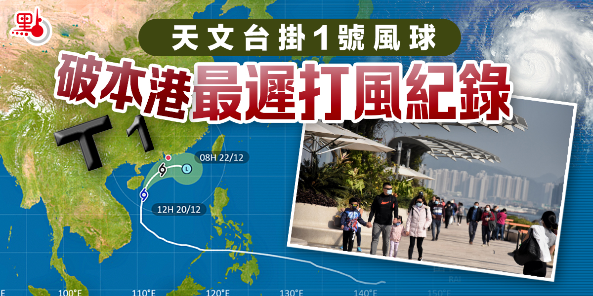 天文台掛1號風球 破本港最遲打風紀錄