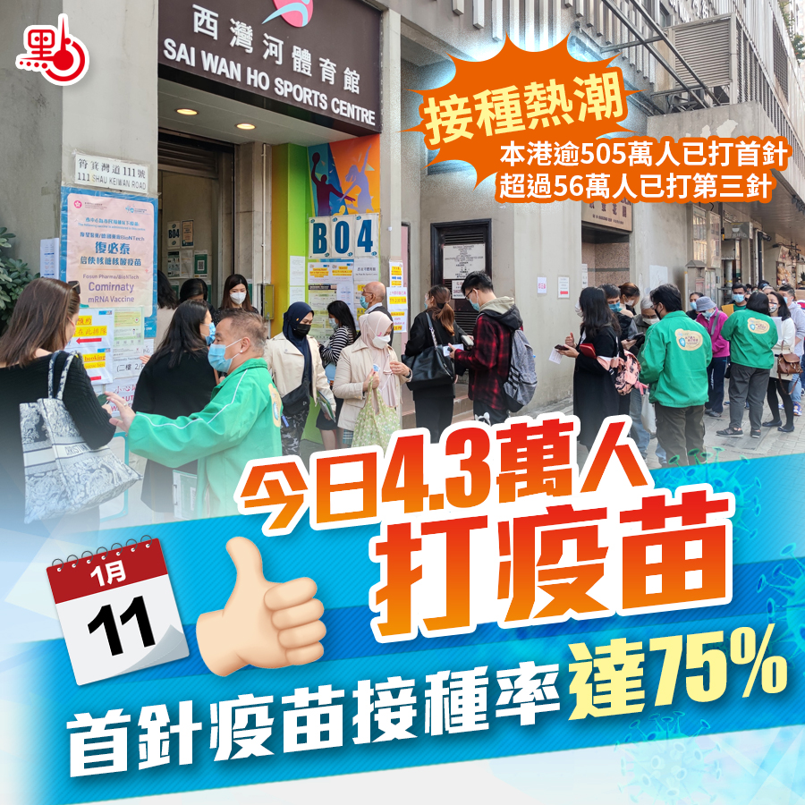 接種熱潮|今日4.3萬人打疫苗 首針接種率達75%