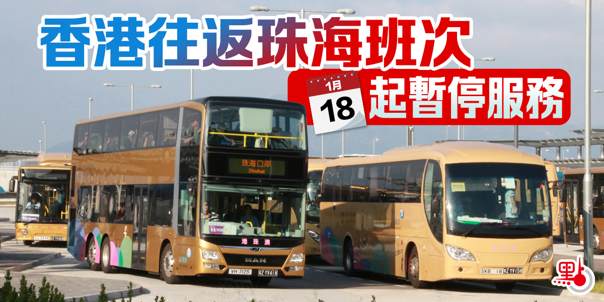 港珠澳大橋穿梭巴士公司今日(17日)中午發布通告,鑒於珠海近日疫情,根據政府部門防疫工作要求,由明日(1月18日)起,香港往返珠海班次暫停服務,意味着由港珠澳大橋前往廣東珠海等地的通道暫時停止。