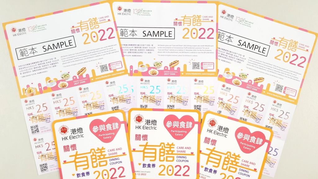 港燈今日(28日)宣布,今年將再度派發「關懷有饍」飲食券,向全港5萬個低用電量或參與港燈電費優惠計劃的住宅用戶派發總值200元飲食券,可於港島區逾200間參與計劃的食肆使用,有效期至今年年底。