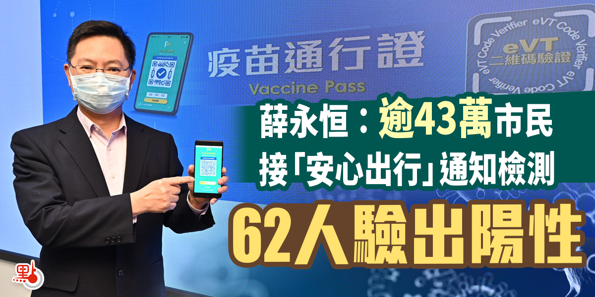 薛永恒:逾43萬市民接「安心出行」通知檢測 62人驗出陽性