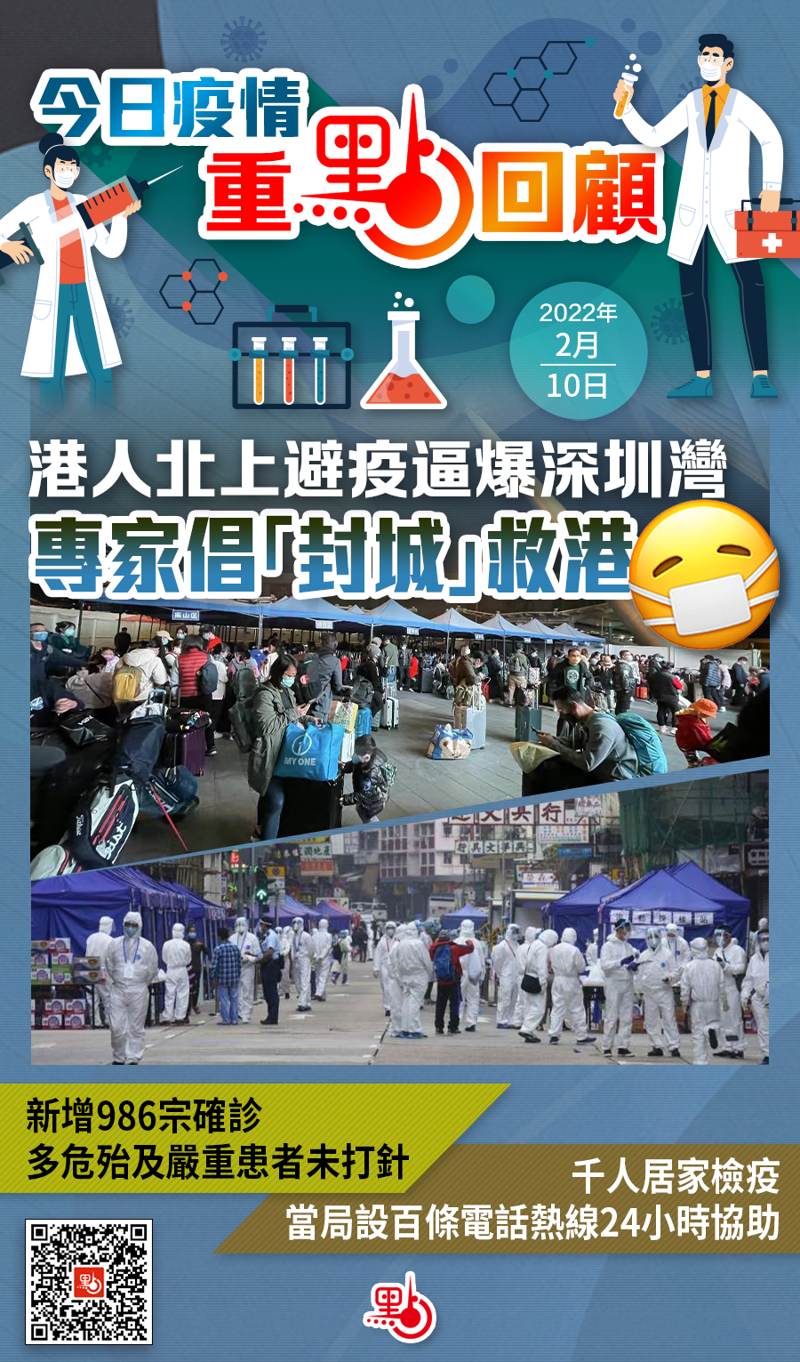 今日疫情重點|港人北上避疫逼爆深圳灣 專家倡「封城」救港