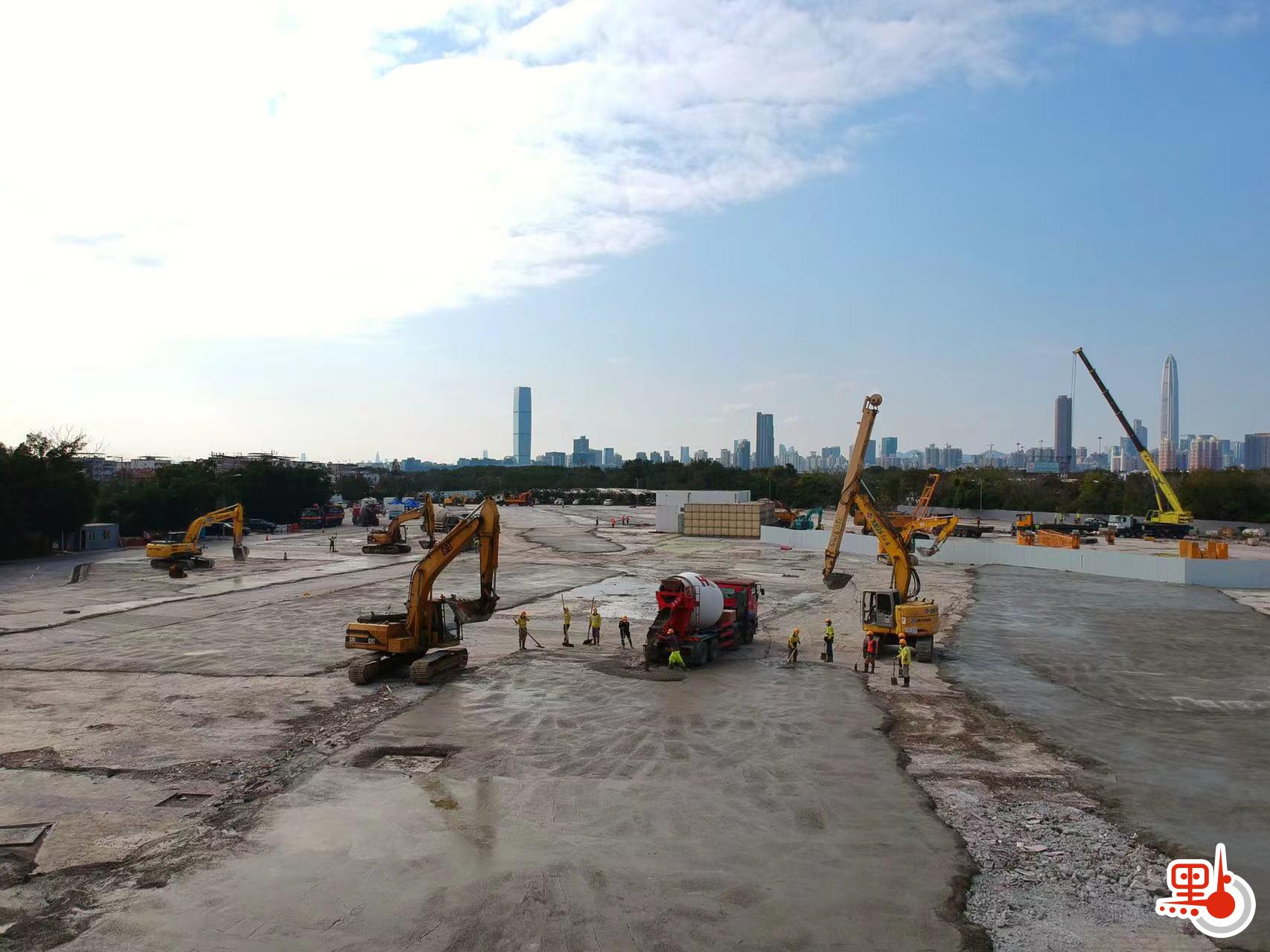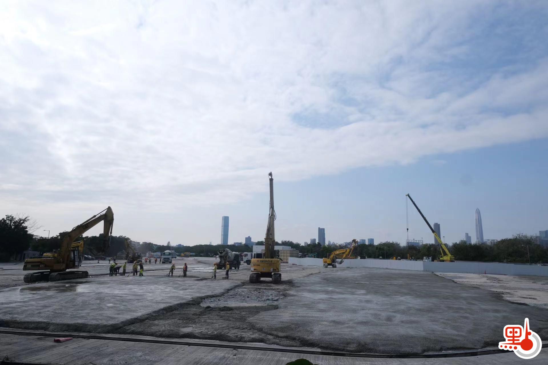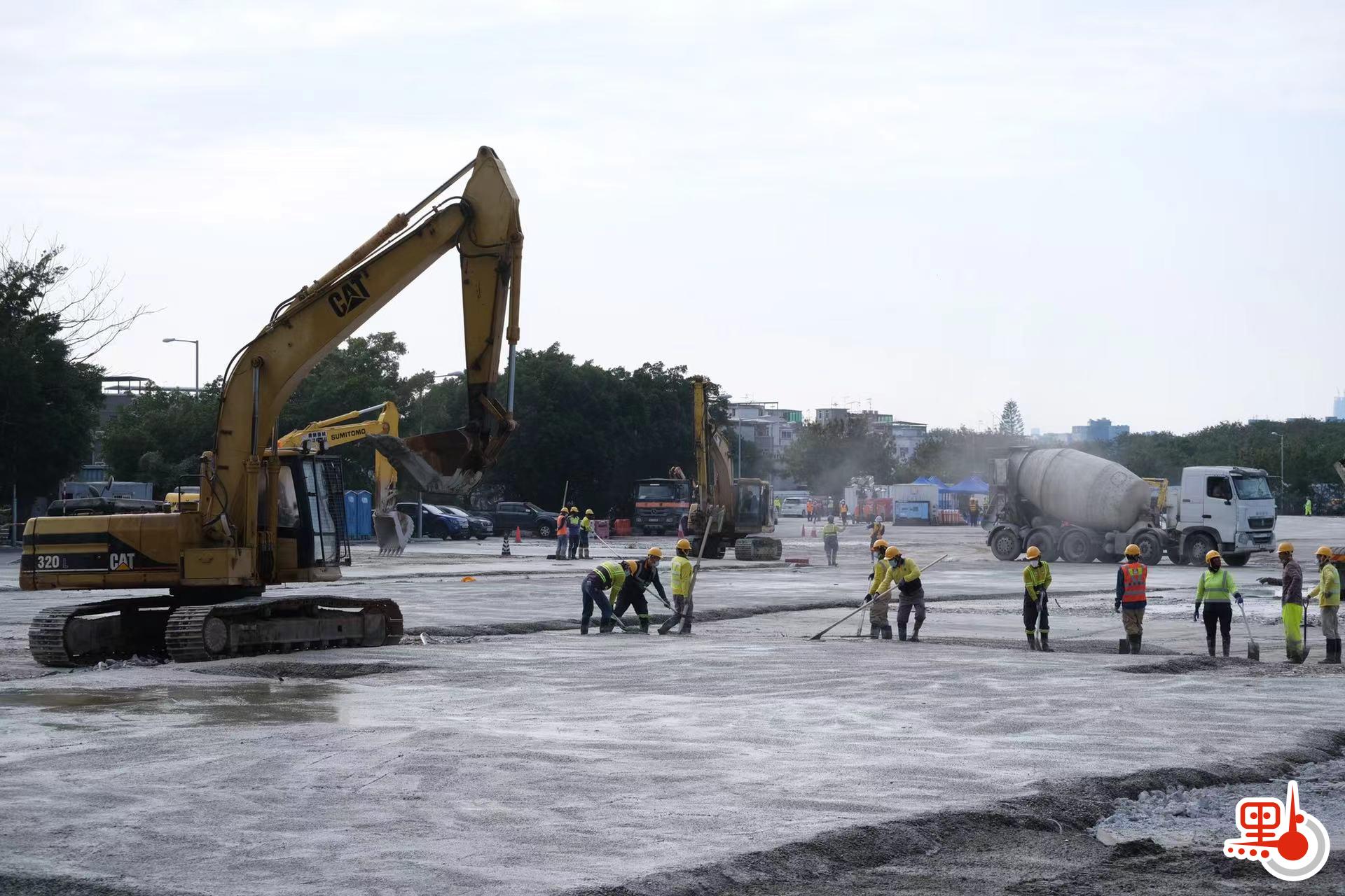 前新田購物城隔離治療設施正緊張有序施工中。(點新聞記者麥鈞傑攝)