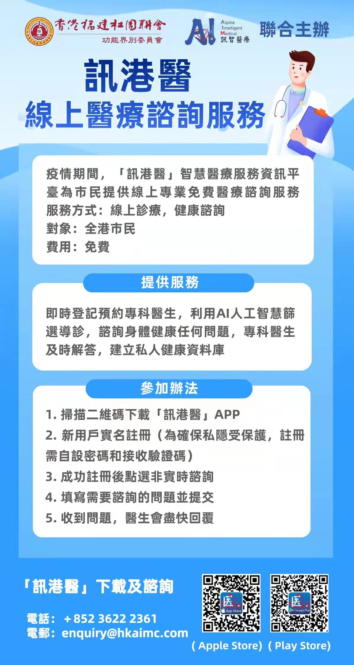 無助時接通的一通求助電話,或許會為求助者帶來莫大的鼓勵和希望。於是,黃偉基組織了十多位醫生、護士,推出醫療手機程式「訊港醫」,為登記的使用者提供醫療查詢、實時應診服務。