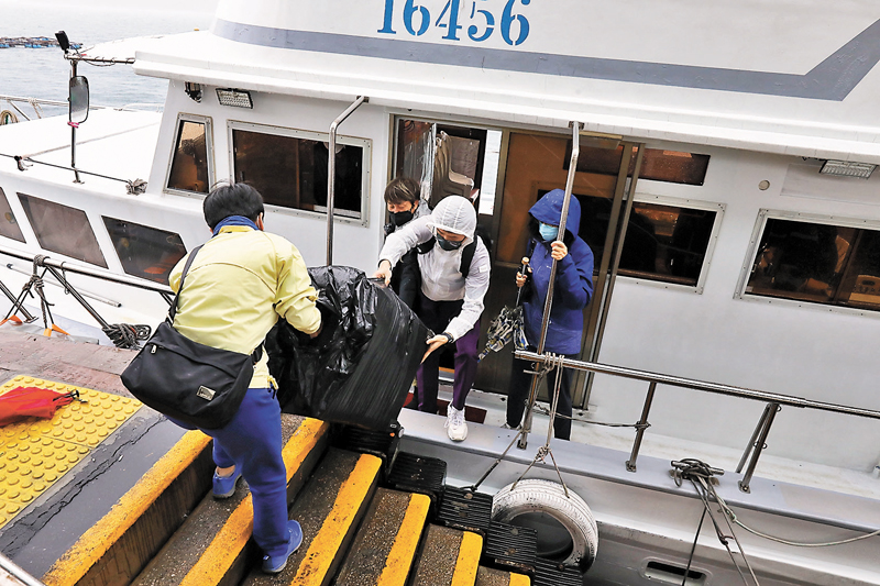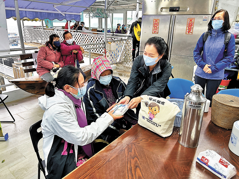 日前,一大清早天落着雨,鄉議局、醫療隊及義工隊等各路人馬頂着風雨、不遠萬里來到西貢黃石碼頭集合,香港文匯報記者抵達碼頭時,風勢雨勢不斷加劇,各人瑟瑟發抖,鄉議局智慧鄉郊小組副召集人劉文君接到電話,對方原來是塔門村公所,擔心天氣惡劣,反建議義工隊改期,但劉文君說:「我們團隊還是堅持過去,想盡快為長者注射疫苗。」