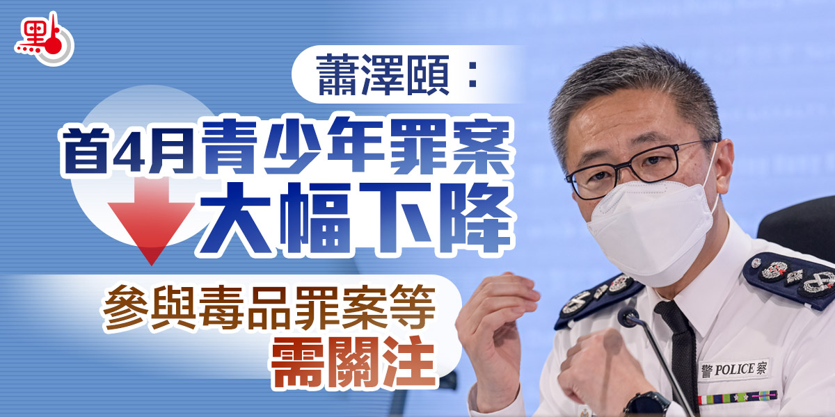 蕭澤頤:首4月青少年罪案大幅下降 參與毒品罪案等需關注