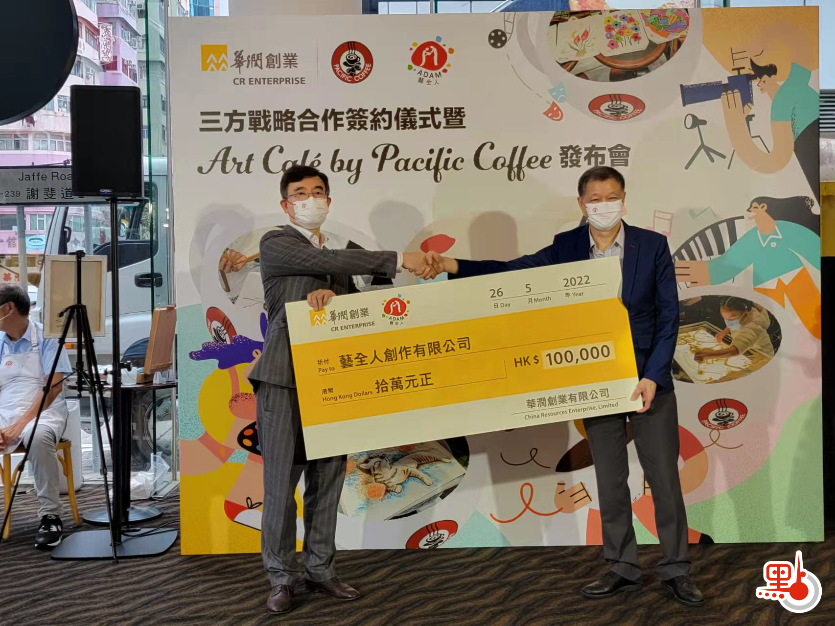 華潤創業向「ADAM藝全人」捐出10萬元支持「Art Café by Pacific Coffee X ADAM」及其他與展能藝術相關文娛藝術活動的開支,ADAM將計劃進駐的文娛藝術團體,由6月起將在Pacific Coffee指定門店舉辦工作坊,售賣藝術作品及進行現場藝術創作。Pacific Coffee首席執行官Mr Jonathan Somerville 指,Pacific Coffee與華潤創業一直致力回饋社會及改善社區環境,推動香港發展成不單是中國與世界之間的藝術交流中心,而是一個能夠展示香港豐富文化及本地藝術家,亞洲區內首屈一指的文化及藝術中心。
