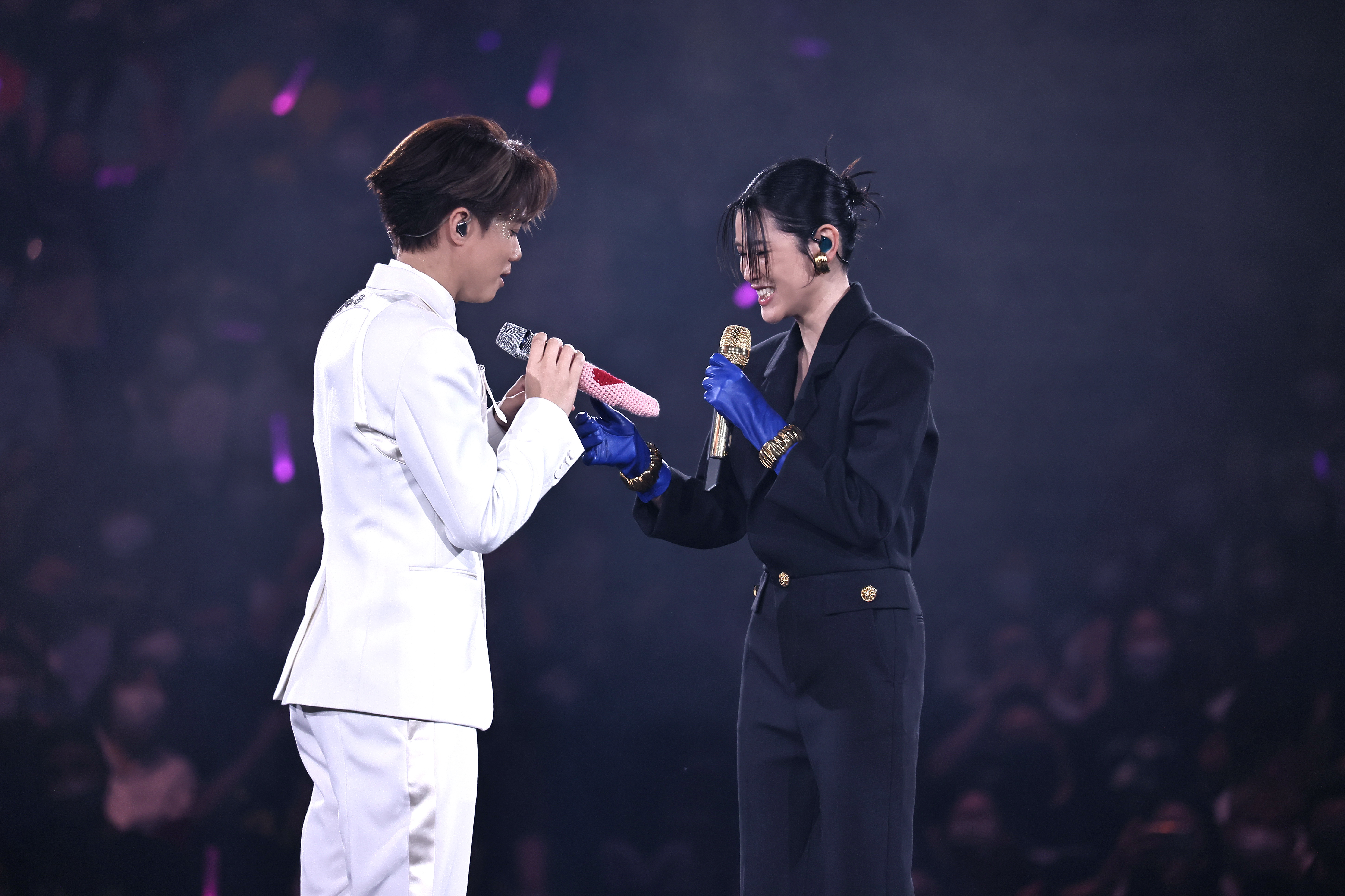 張敬軒THE NEXT 20 演唱會昨日(27日)踏入第13晚,這晚他請來同鄉陳蕾一起載歌載舞,兩人合唱《詩郵寄》,已經令全場哄動,意想不到陳蕾還送上手織的咪套,親手幫軒仔「笠」上去,引得觀眾狂笑,連軒仔都忍唔住話,「呢份禮物真係好爆。」