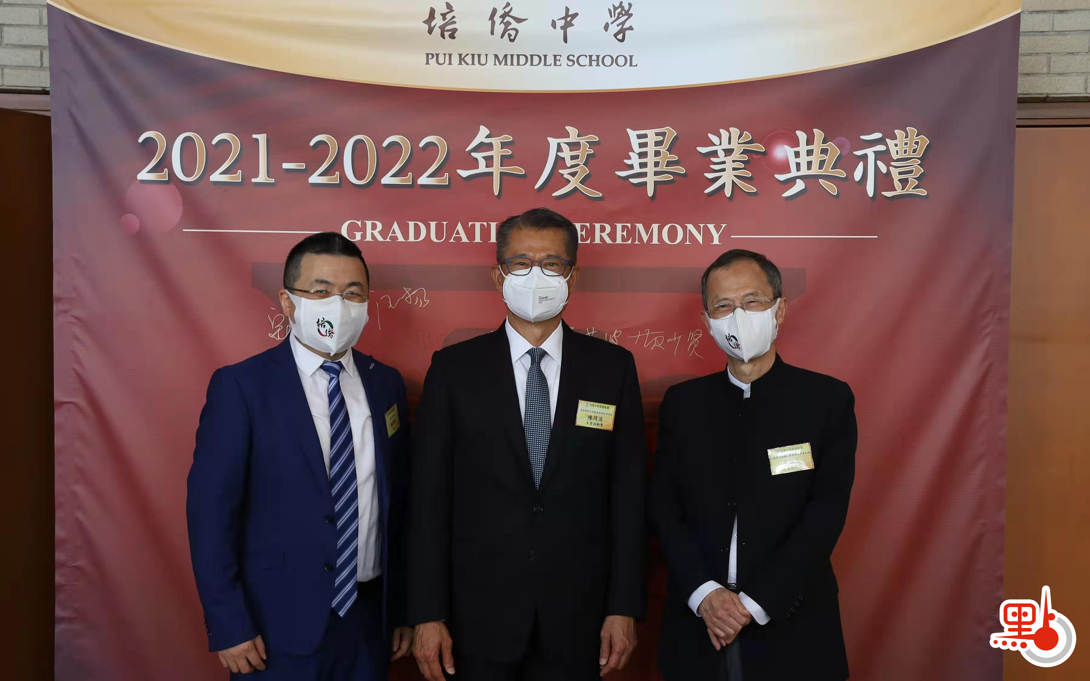財政司司長陳茂波在致辭時讚賞本屆畢業同學在過去兩年多疫情一再來襲的期間,順利完成了中學文憑考試,又以「煎炒蒸炸燘燉焗」的妙喻,指出只要努力去嘗試烹調,食物就有美味之處,藉此來鼓勵同學去努力嘗試,在追尋和實踐理想的過程中保持熱誠、努力和堅毅。