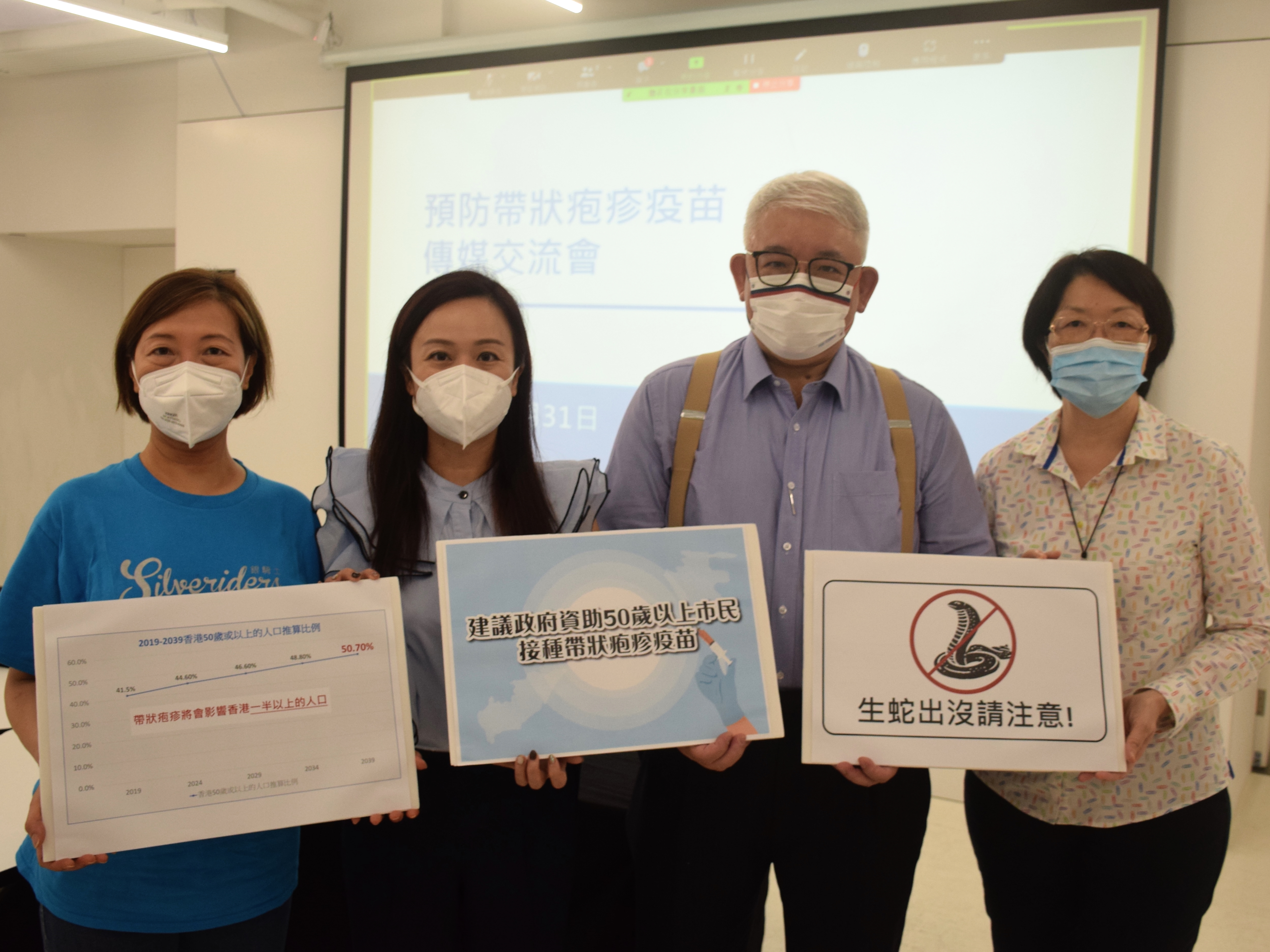 長期關注疾病預防工作的家庭醫學專科醫生朱偉星、銀騎士聯合創辦人林淑華、香港藥學服務基金主席蔣秀珠藥劑師早前於記者會分享疫情下長者生蛇的風險及預防、簡介預防生蛇疫苗,以及政府為市民接種生蛇疫苗的建議。