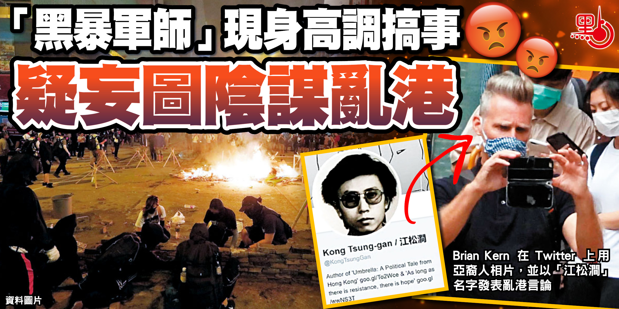 記者發現,「DC4HK」成員Brian Kern,就是2019年黑暴期間甚為活躍的「黑暴軍師」Brian Patrick Kern。翻查資料,此人曾被媒體爆出在港期間擁有多個身份,包括國際學校教師、總部在美國的「特赦國際」成員。雖然他是外國人,但卻在其Twitter上貼一張亞裔人相片,並以「江松澗」(Kong Tsung-gan)的名字發表諸多亂港言論,有媒體更懷疑他是美國中情局(CIA)特務。據悉,Brian Kern在香港國安法實施前已逃離香港,其後一直未公開露面,這次高調現身,或者另有陰謀。