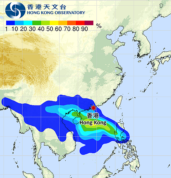 天文台預測,該低壓區隨後會移向廣東西部至海南島一帶,受其外圍雨帶影響本港周二及周三風勢頗大,有狂風大驟雨及雷暴,海面有湧浪。天文台提醒市民留意最新天氣消息,並做好防風防雨的準備。