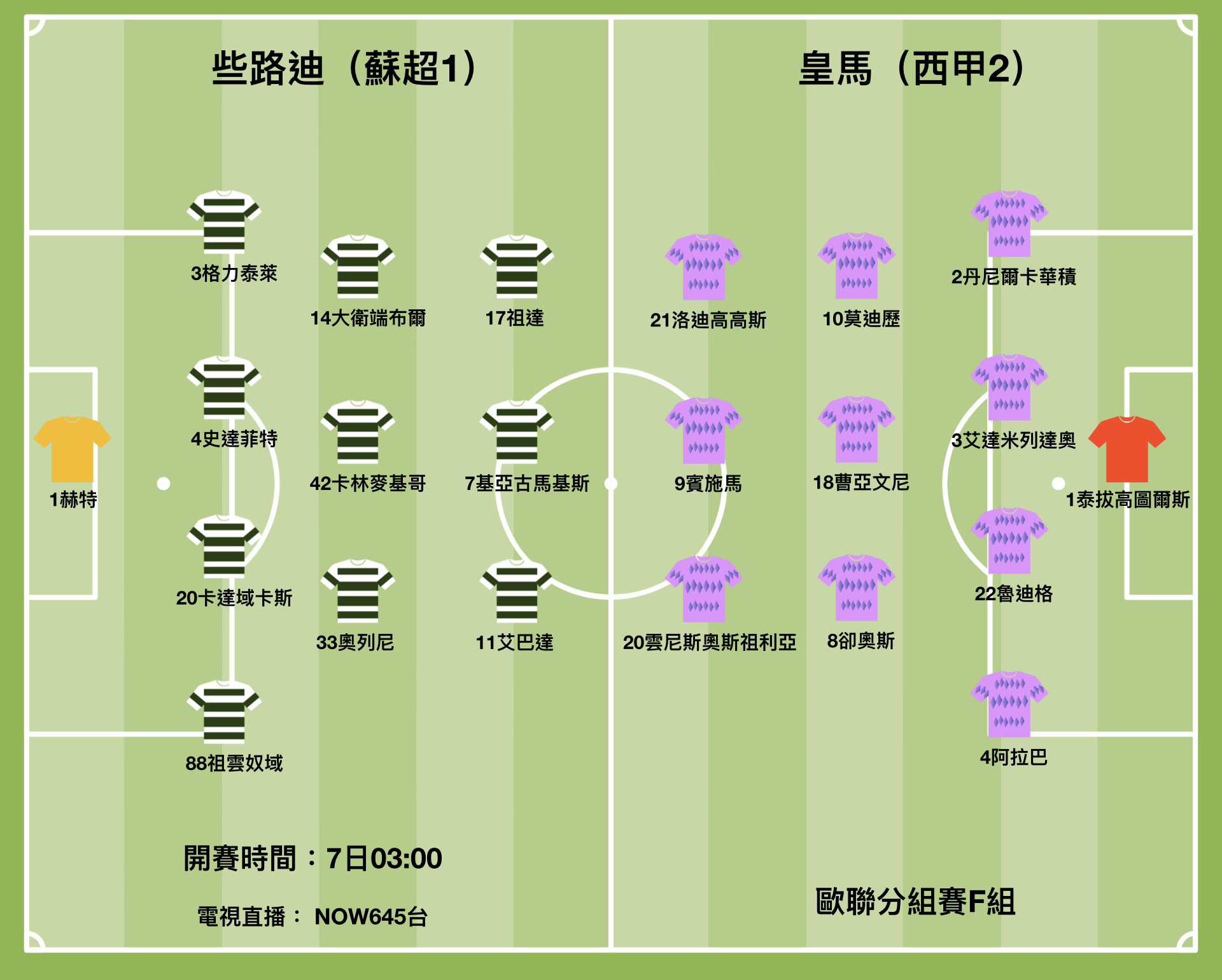 歐聯14屆盟主、西甲勁旅皇家馬德里在歐聯F組首仗,作客蘇超「山寨王」些路迪。真正王者以這場賽事作為衛冕首戰,確是耐人尋味的戲碼。(香港時間周三凌晨3時開賽,NOW645台直播)