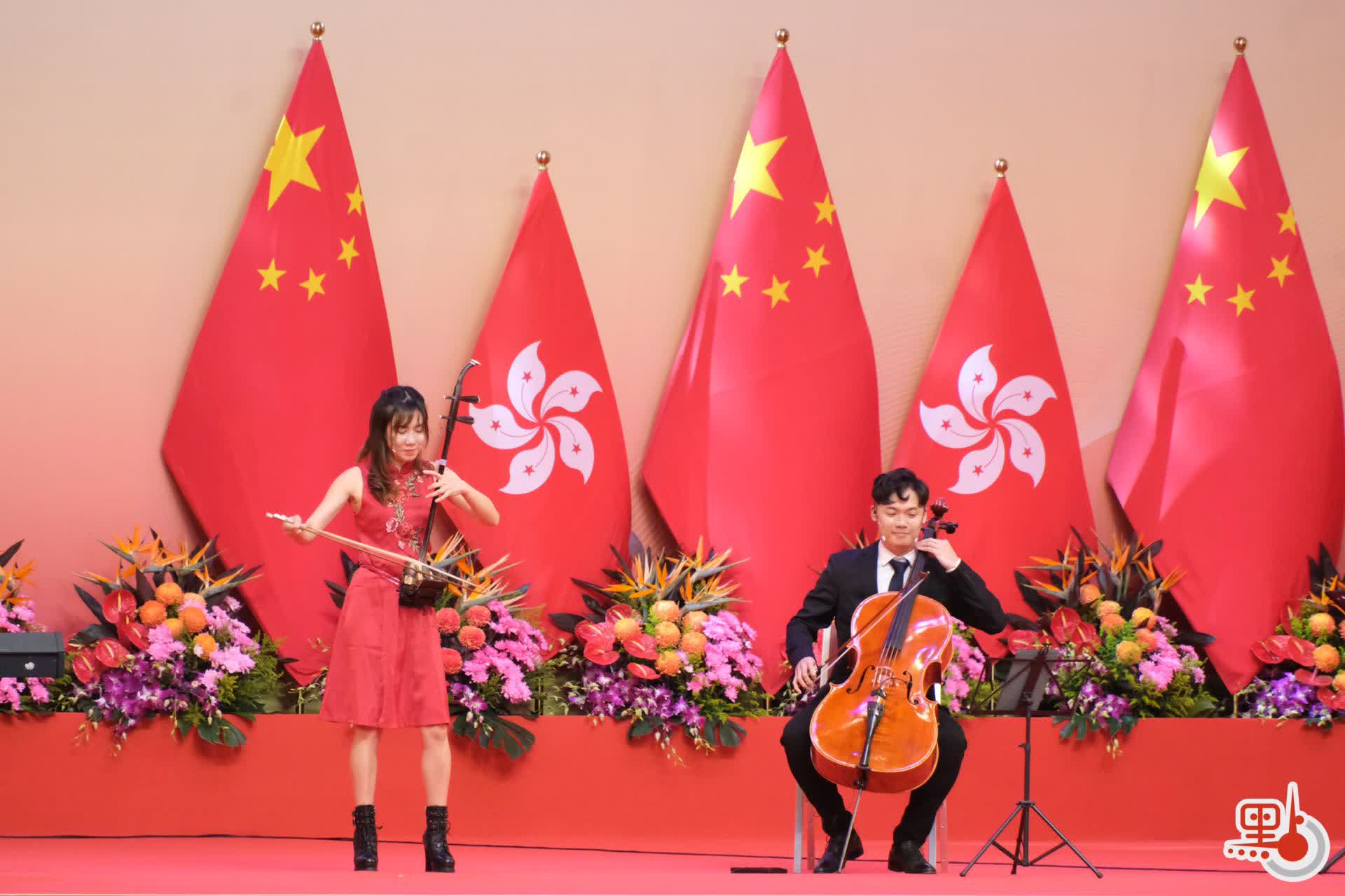 今日(1日)是中華人民共和國成立73周年,香港特區政府今早在灣仔金紫荊廣場,舉行升旗儀式。升旗儀式結束後,特區政府在會展中心舉行國慶酒會,行政長官李家超主禮。