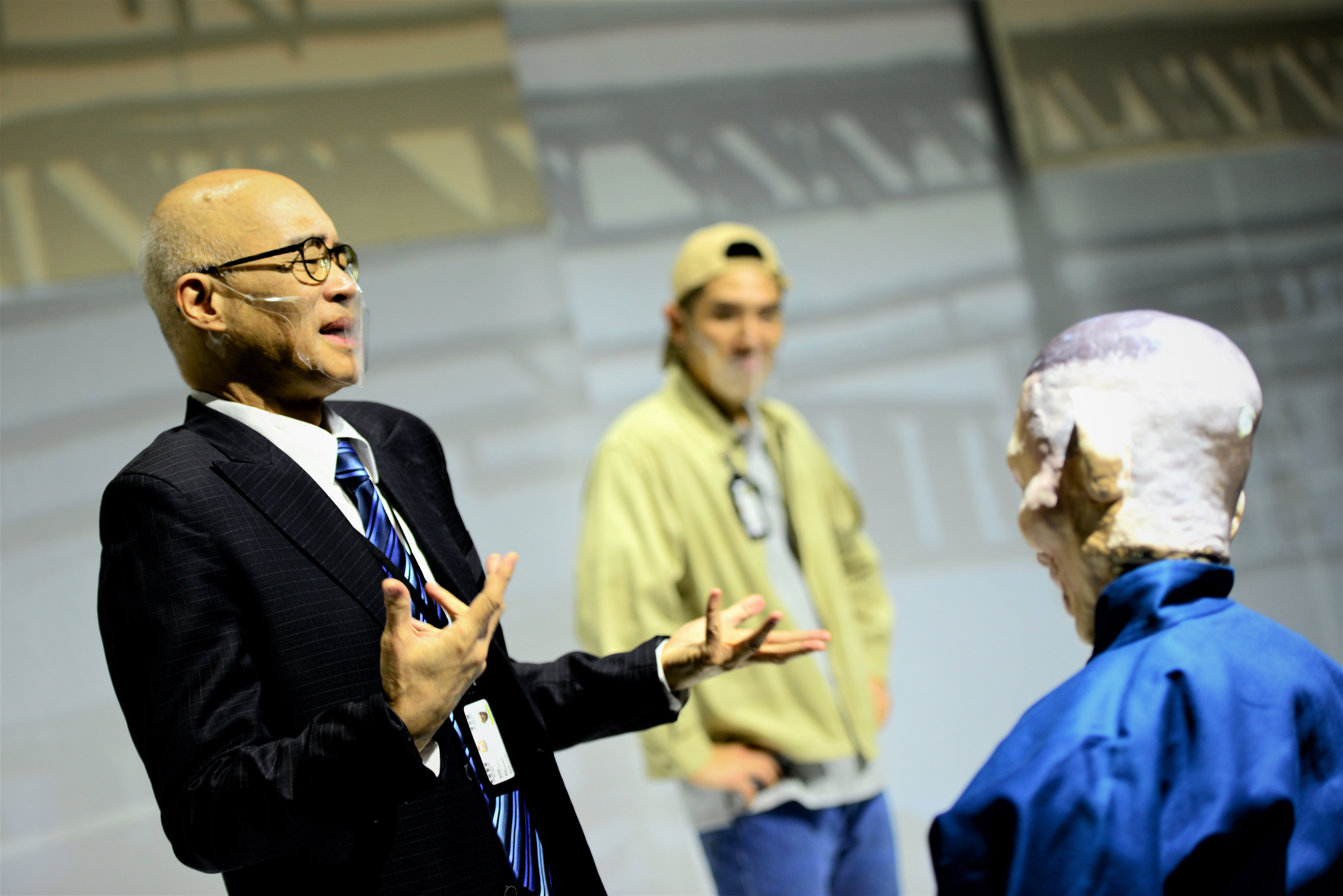 身為觀眾,更多時候是在以一種抽離其外的視角,聽角色講述一段塵封的往事。於是,整場演出選擇以神探關振鐸退休的《最長的一日》為起點,仿佛是在錨定整個故事網絡的中心點。時而向前回望主人公初出茅廬的歲月;時而向後呈現主人公與徒弟駱小明之間的代際交接,讓原本嚴絲合縫的結構,多了一點靈動推拉的空間。