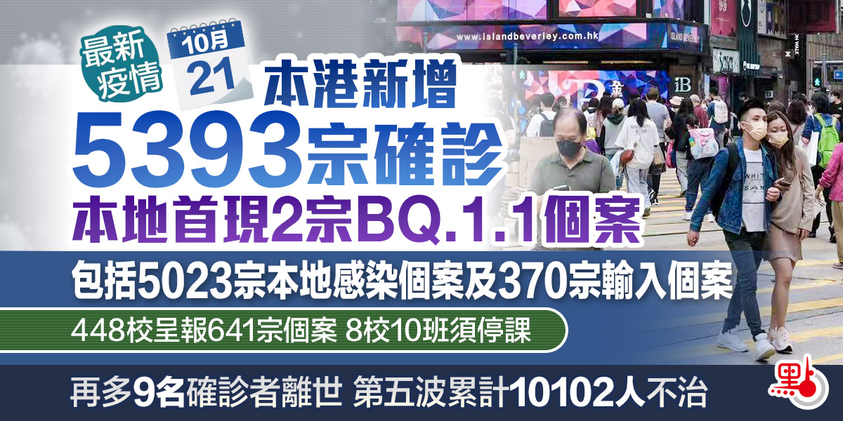 本港新增5393宗確診 本地首現2宗BQ.1.1個案