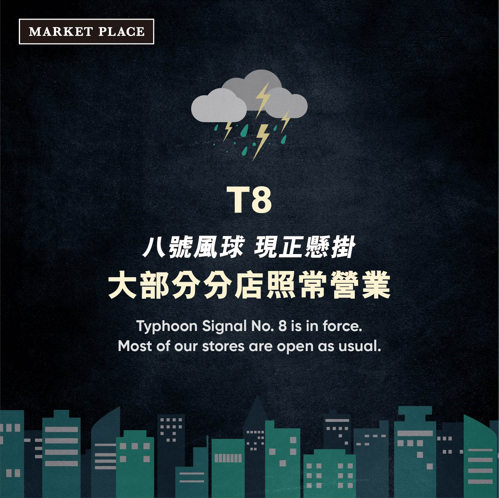 而以下分店於8號風球懸掛後2小時內將會暫停服務:中環盈置大廈Market Place、山頂Market Place、清水灣Market Place by Jasons、愉景灣Market Place、中環太子大廈 Oliver's the Delicatessen。