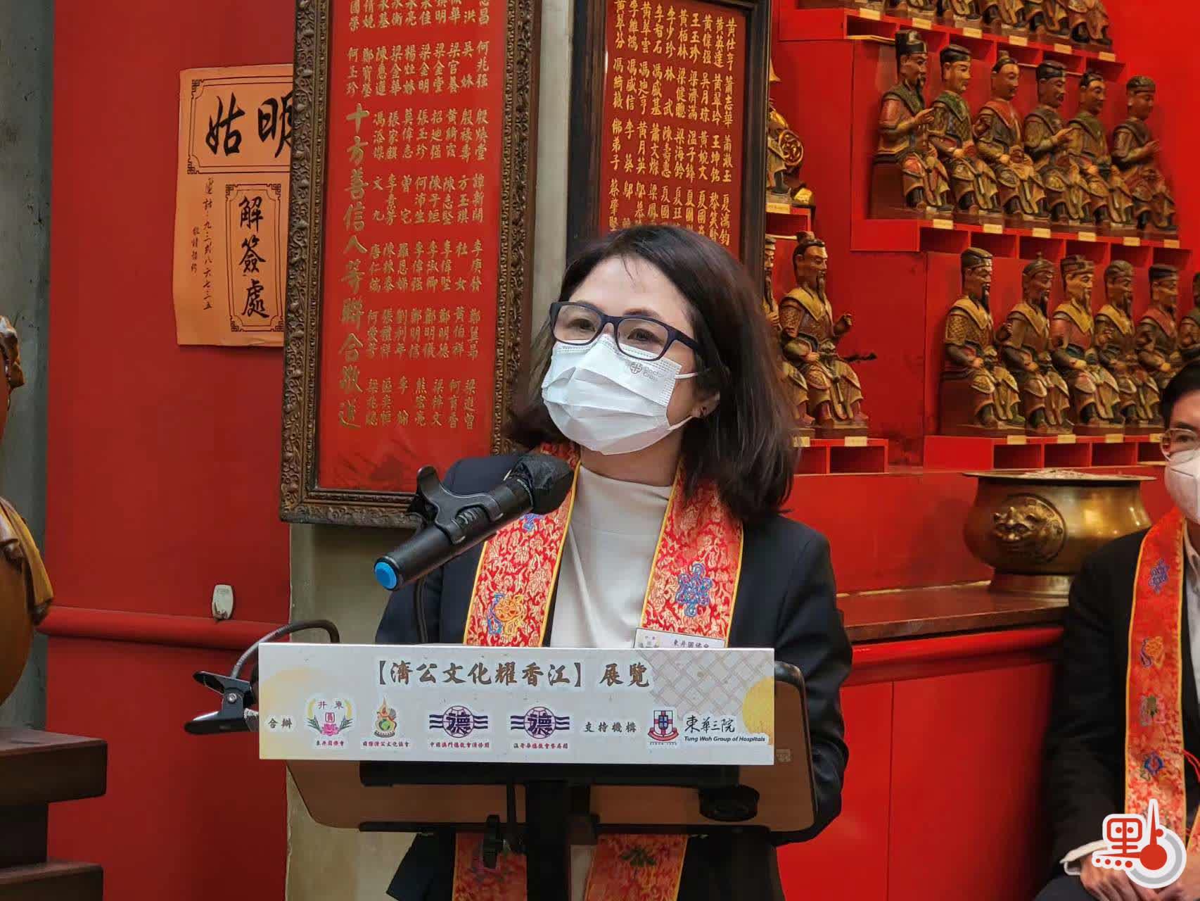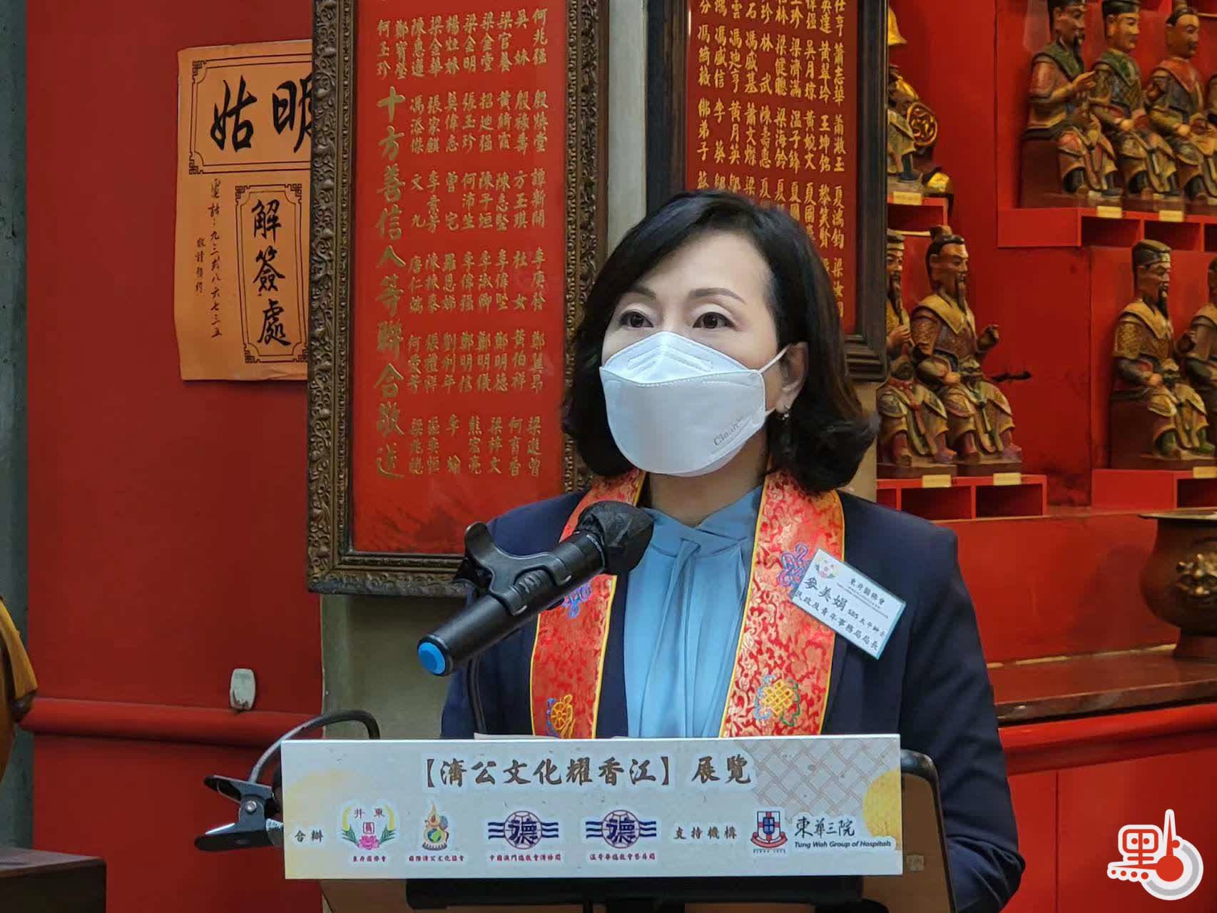 擔任主禮嘉賓民政及青年事務局局長麥美娟致辭時稱,濟公文化與香港甚有淵源,港人拜祭濟公已有悠久歷史,其文化亦廣傳至今,濟公濟世關懷的形象早已深入民心,聯合國教科文組織在2016年更將濟公故事列入「非物質文化遺產」,可見濟公在中華文化佔一席位,團體多年來推廣濟公精神及文化,成果有目共睹,局方期望團體繼續推廣濟公故事及哲理,傳承歷史悠久的中華文化。