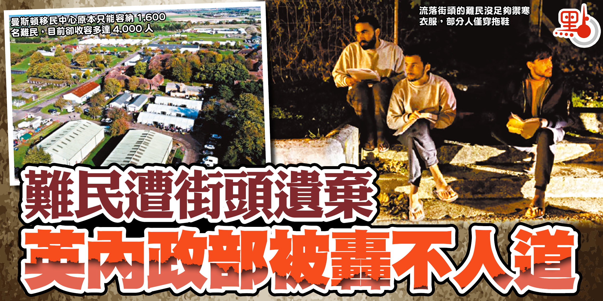 英國近期安置難民不當,醜聞頻出!英國內政部前日將11名難民留在倫敦市中心的維多利亞火車站,沒有任何人員提供幫助。慈善機構Under One Sky的志願人員阿巴斯表示,這群來自曼斯頓的難民沒有足夠禦寒衣服,大部分人僅穿拖鞋,批評當局為紓緩移民中心擠迫情況,將難民遺棄街頭,做法極不人道。