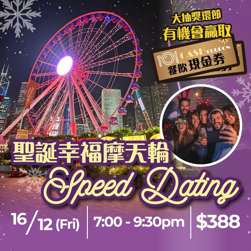 中環摩天輪是香港熱門浪漫約會景點,HK Romance Dating(HKRD)首度與香港摩天輪合作,於12月16日(星期五)晚上舉辦「2022首個大型浪漫交友海濱活動:聖誕幸福摩天輪Speed Dating」,每位參加人士收費388元,單身男女在地面玩遊戲後,將登上摩天輪進行打咭任務,完成即獲得大抽獎資格,贏取餐飲禮券及禮品。