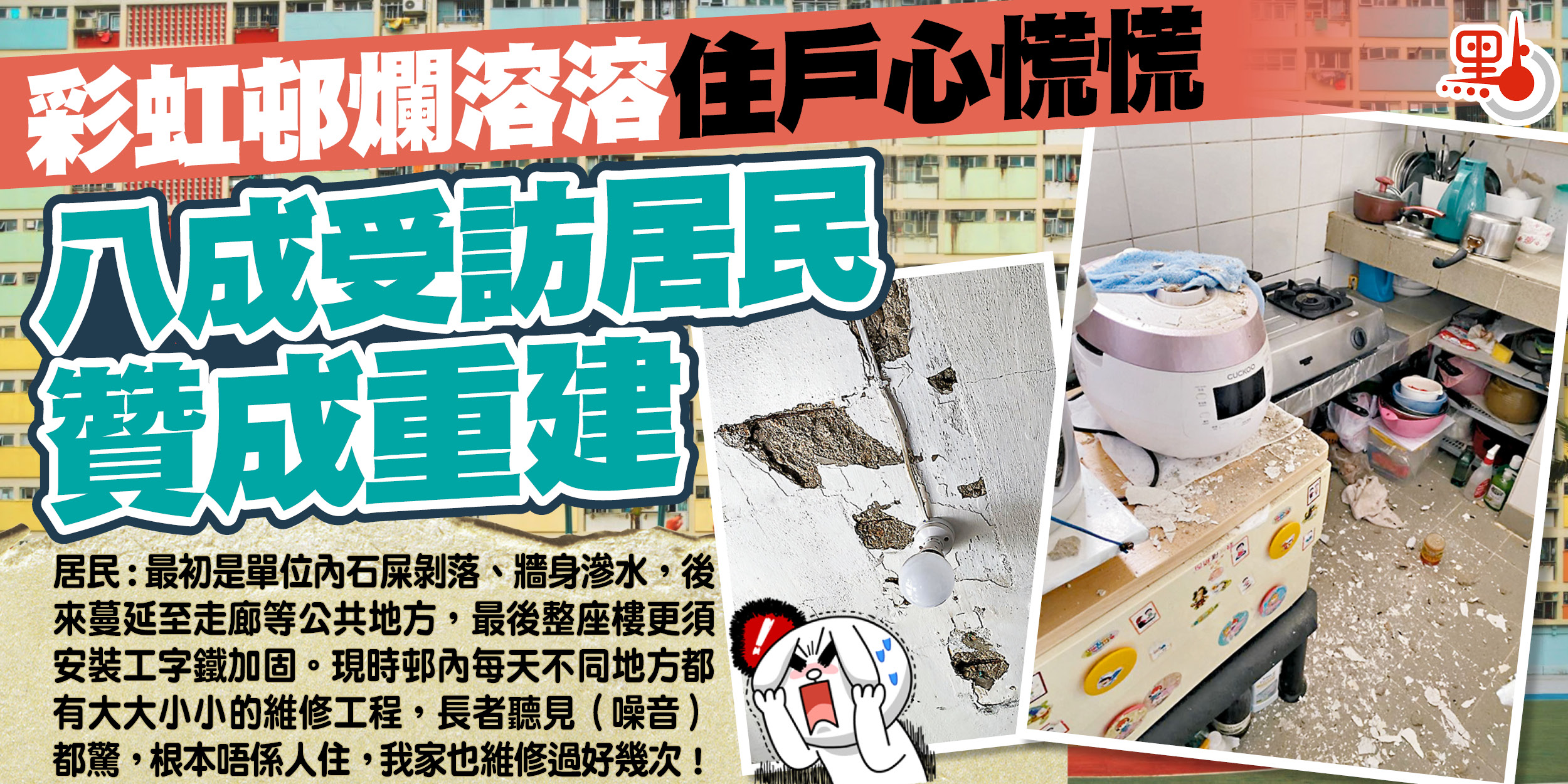 彩虹邨爛溶溶住戶心慌慌 八成受訪居民贊成重建
