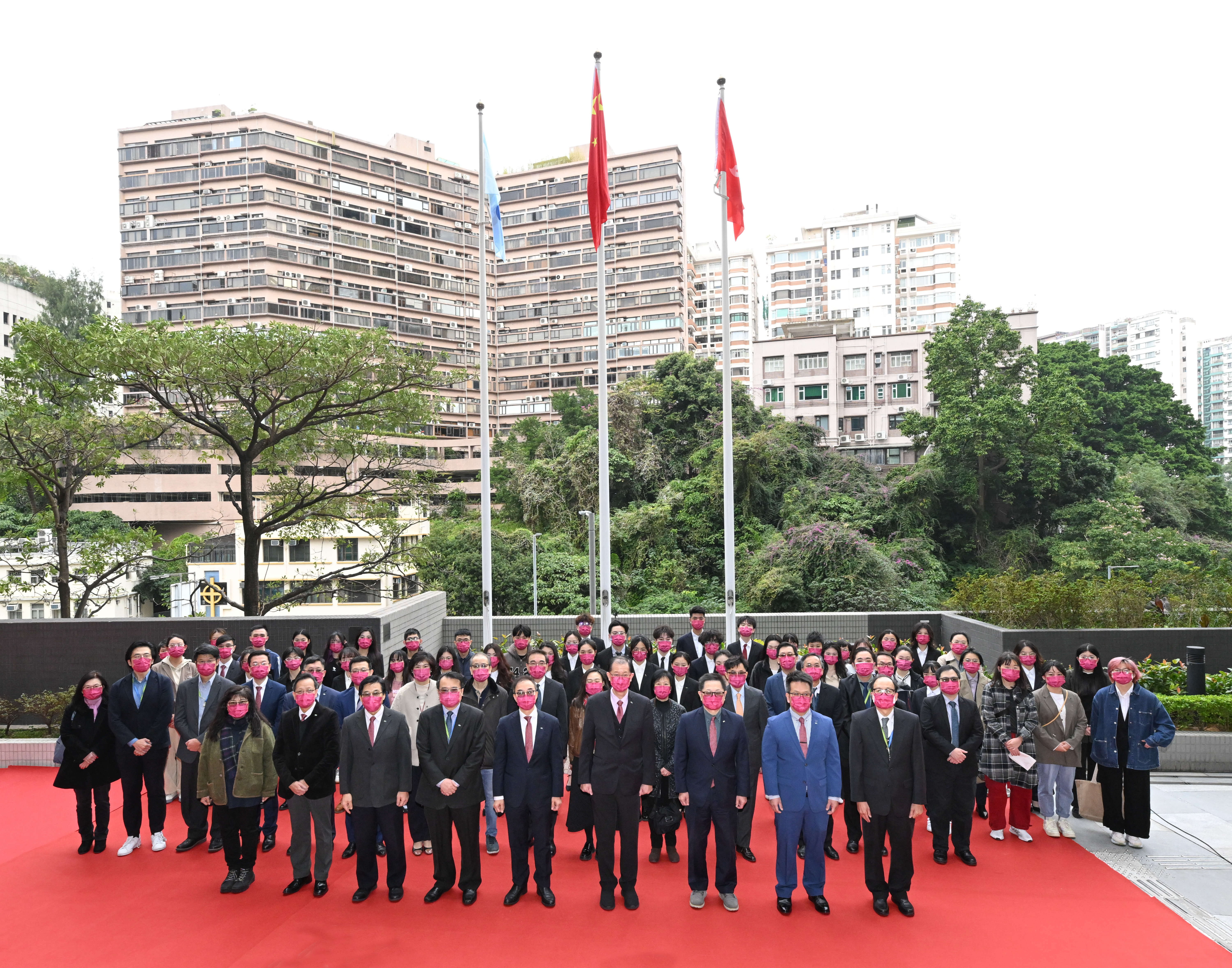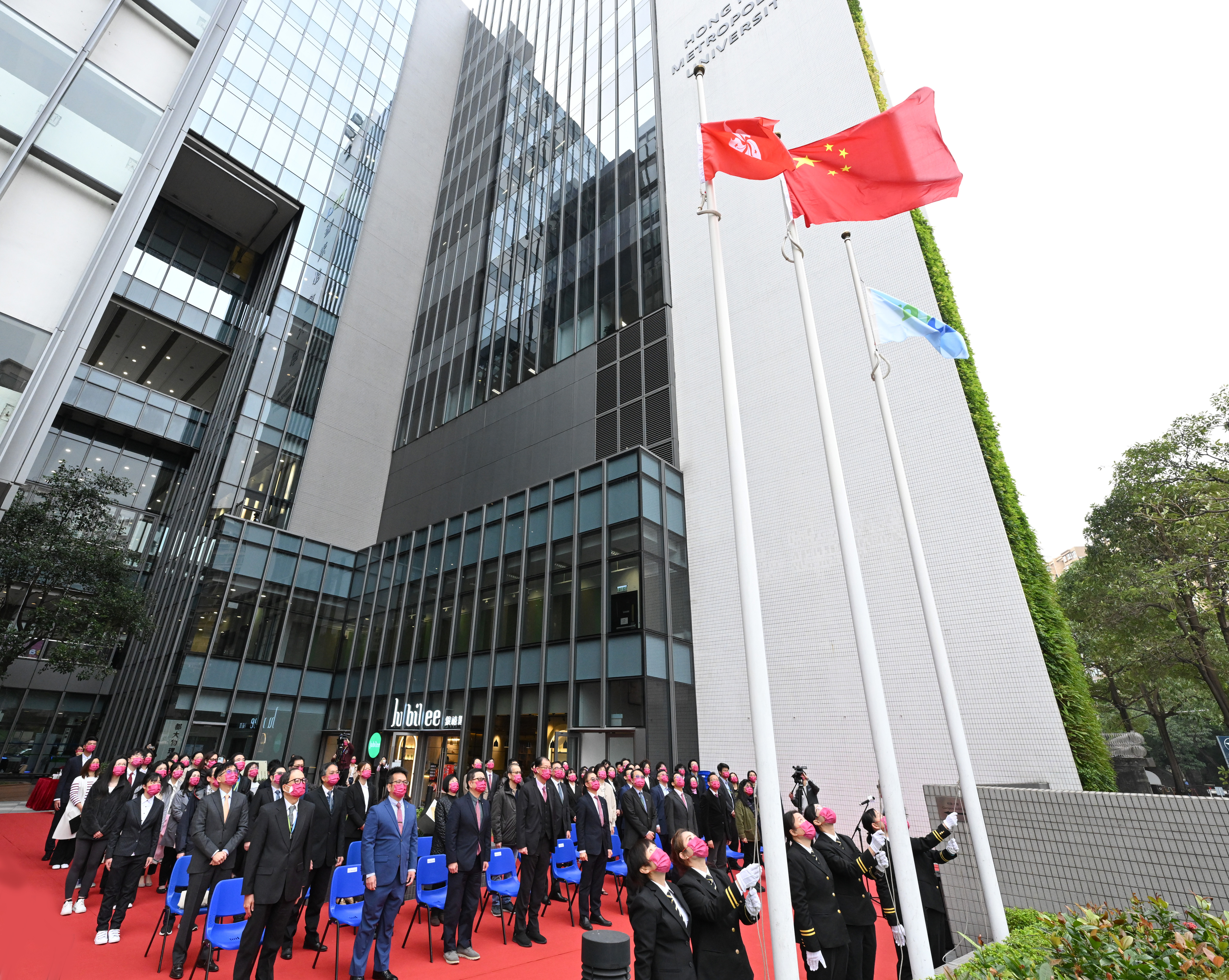 香港都會大學(都大)今日(1月1日)上午於賽馬會校園舉行元旦日升國旗儀式,迎接新的一年。出席者包括都大校董會成員、管理層成員、教職員及學生。