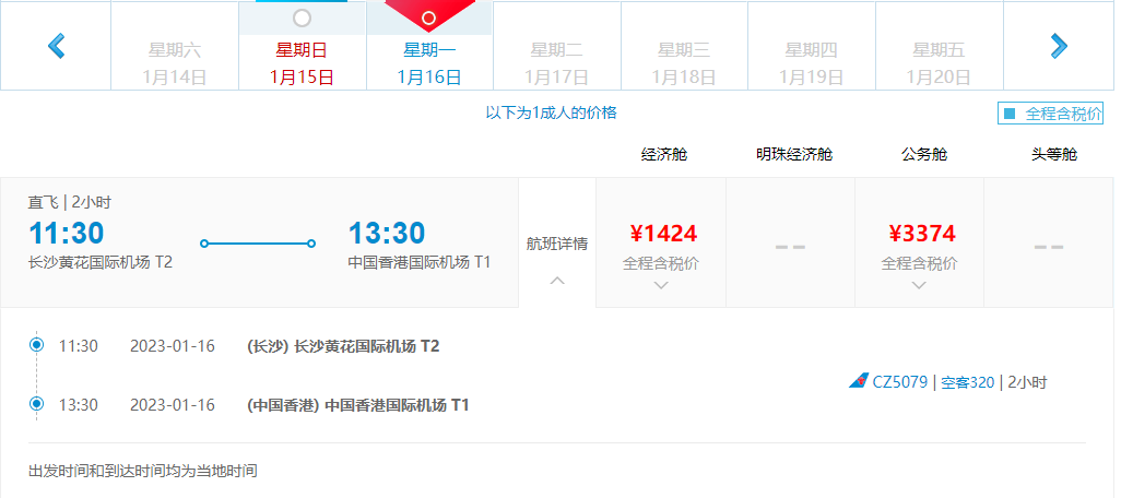 據悉,南航將於1月16日新開通長沙至香港航線。目前,長沙至香港航線均需轉機,耗時較久。南航新開通航線為每周一執行一班,當日往返。去程航班號為CZ5079,11時30分從長沙起飛,13時30分到達香港;回程航班號為CZ5080,15時05分從香港起飛,16時55分到達長沙。長沙至香港票價1300元(人民幣,下同)起,香港至長沙票價1660元起(以上價格不含稅費)。