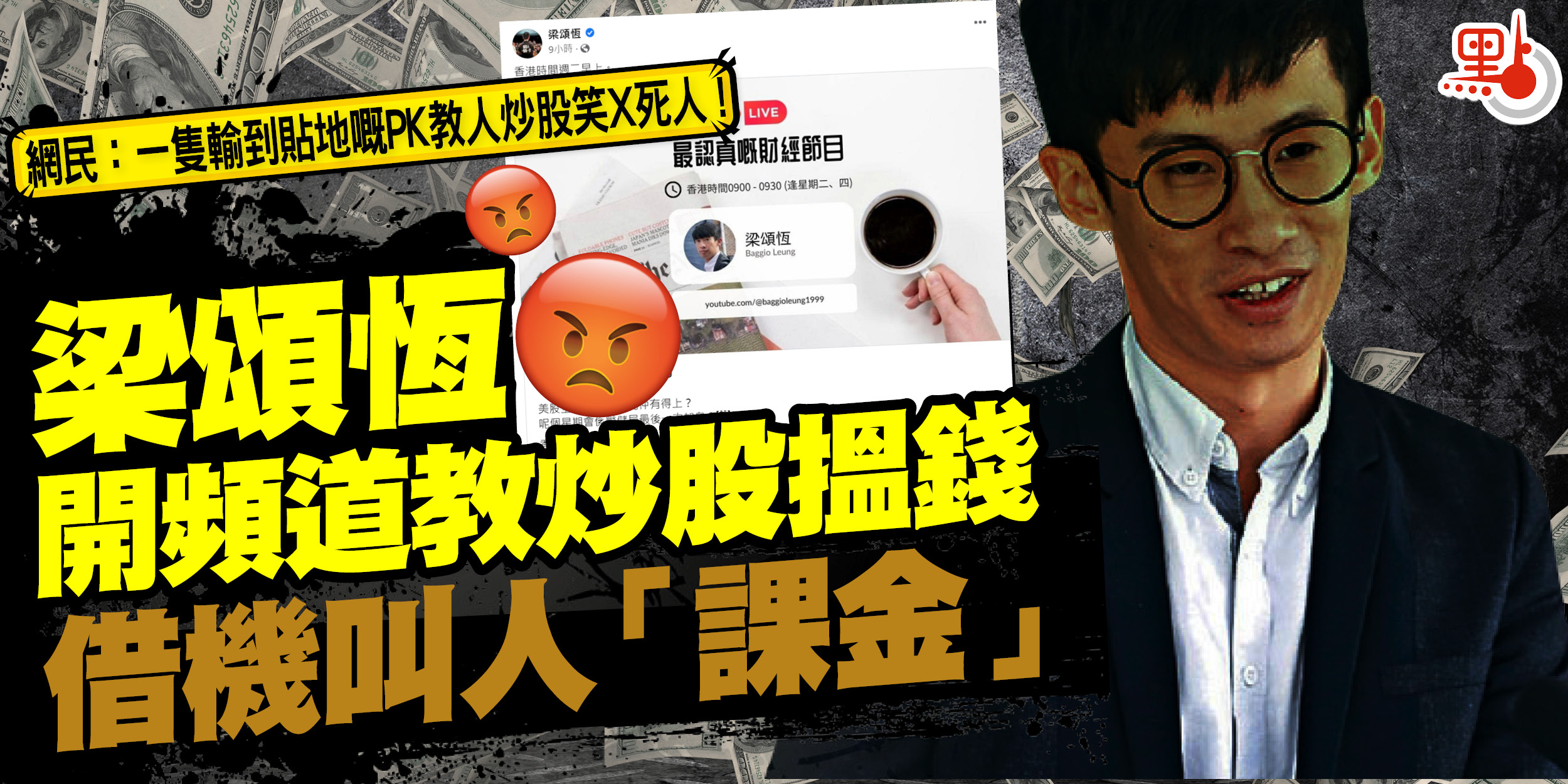 逃匿到美國的「港獨」分子梁頌恆為咗吸金無所不用其極,搞搞吓所謂「國際線」,就趁勢喺Patreon出post教人炒股搵錢,大談港股美股,近期仲開設Youtube頻道,聲稱係「最認真嘅財經節目」喎,不過只有104位訂閱者,真係少得可憐。有網民在影片留言揶揄「冇金主課金搞政治 要R(搲)撈金融?」、「你啲鴨脷洲口音好重,我聽唔明你講乜 ! 一隻輸到貼地嘅PK教人炒股笑X死人 !」