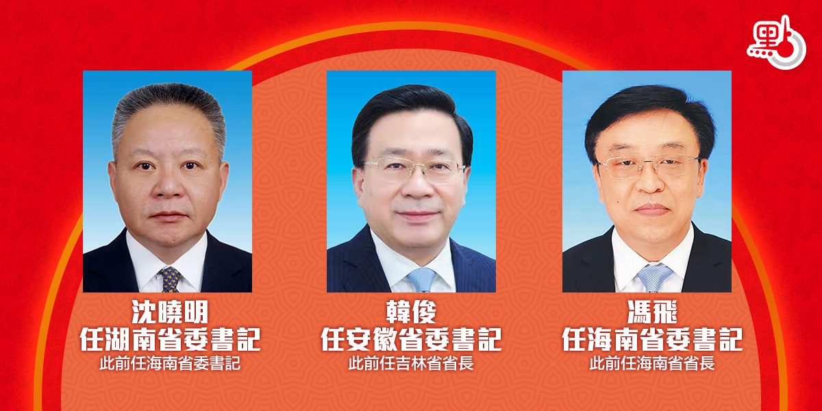 沈曉明任湖南省委書記 韓俊馮飛任安徽海南「一把手」