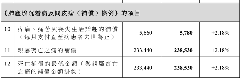 發言人補充,提高補償金額可為工傷僱員、職業病患者,以及因工傷或職業病死亡僱員或人士的家屬提供更佳保障。