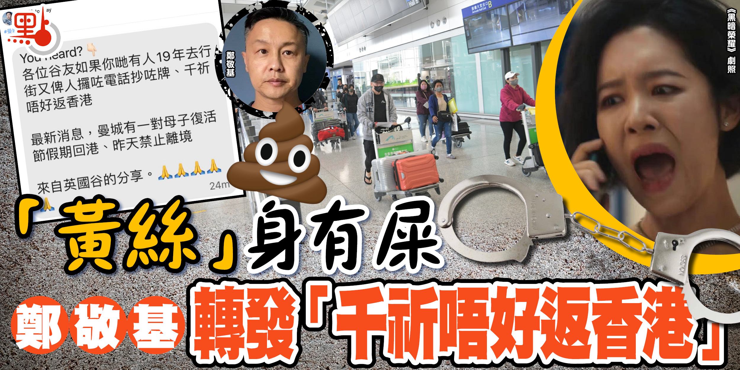 「黃絲」身有屎 鄭敬基轉發「千祈唔好返香港」