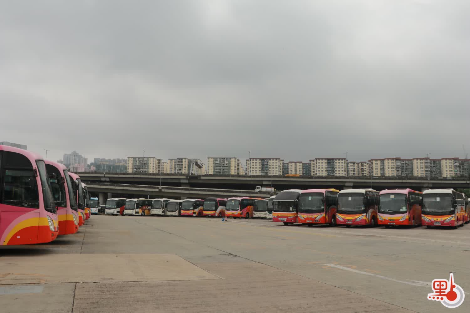 點新聞記者留意到,現場停泊數以百計的旅遊巴,以跨境直通巴數量最多,部分久經日曬雨淋,開始有雨痕、鏽漬、外殼損毀、輪胎漏氣等情況,場面令人不忍直視。