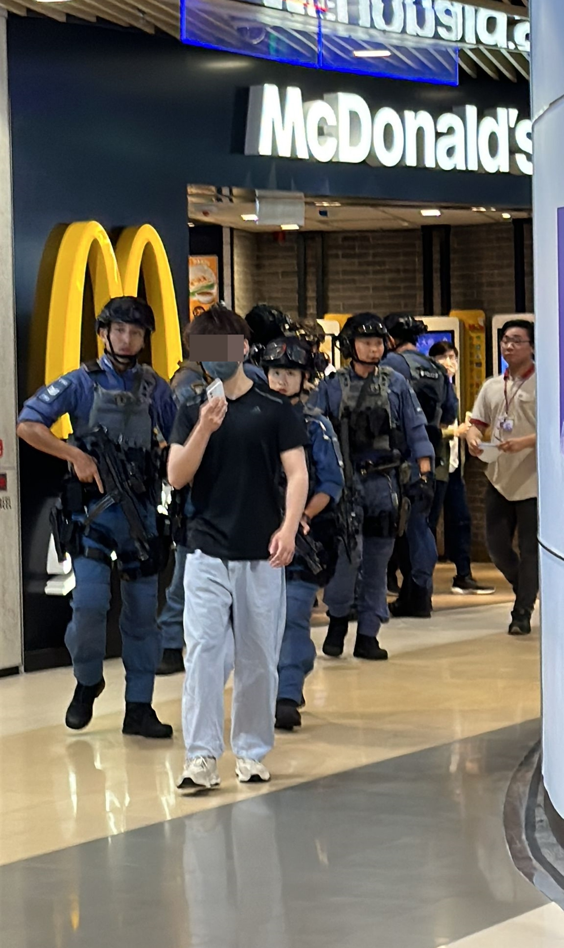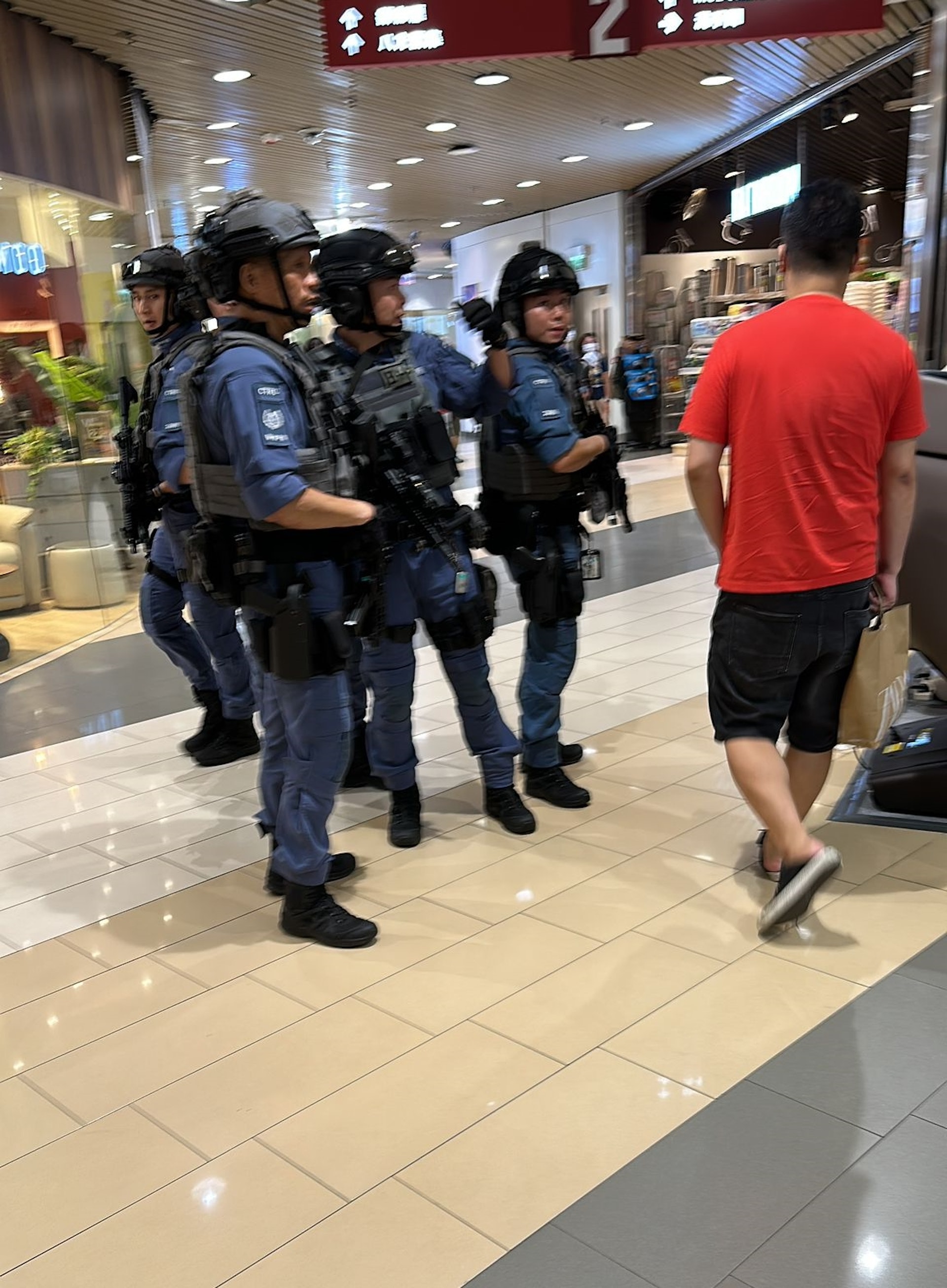 大批荷槍實彈的警員趕到商場搜索,暫時未有發現。