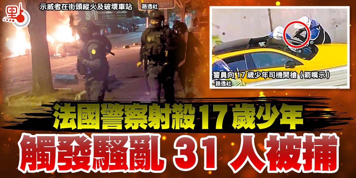 法國首都巴黎市郊楠泰爾一名17歲少年,因沒有遵守警員的命令停車,被警員開槍擊斃。事件觸發示威騷亂、警民衝突,至少31人在衝突中被捕、25名警員受傷。兩名涉事警員接受查問後,開槍警員因殺人罪被捕。
