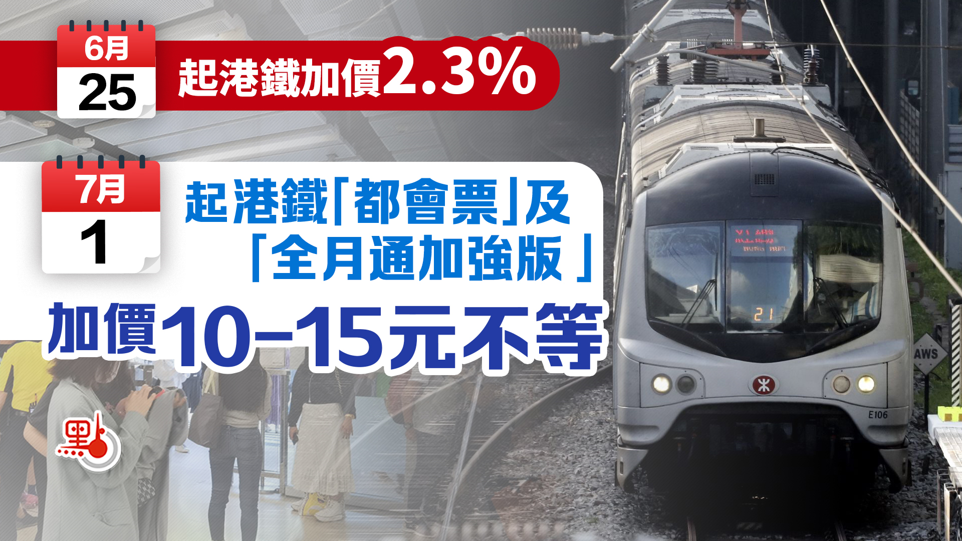 【點新聞報道】港鐵早前宣布6月25日起加價2.3%,市民常用的「都會票」、「全月通加強版」新售價在今日(7月1日)起生效,價格上調10至15元不等。