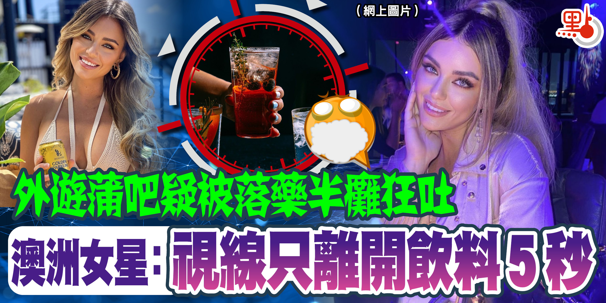 外遊蒲吧疑被落藥半癱狂吐 澳洲女星:視線只離開飲料5秒